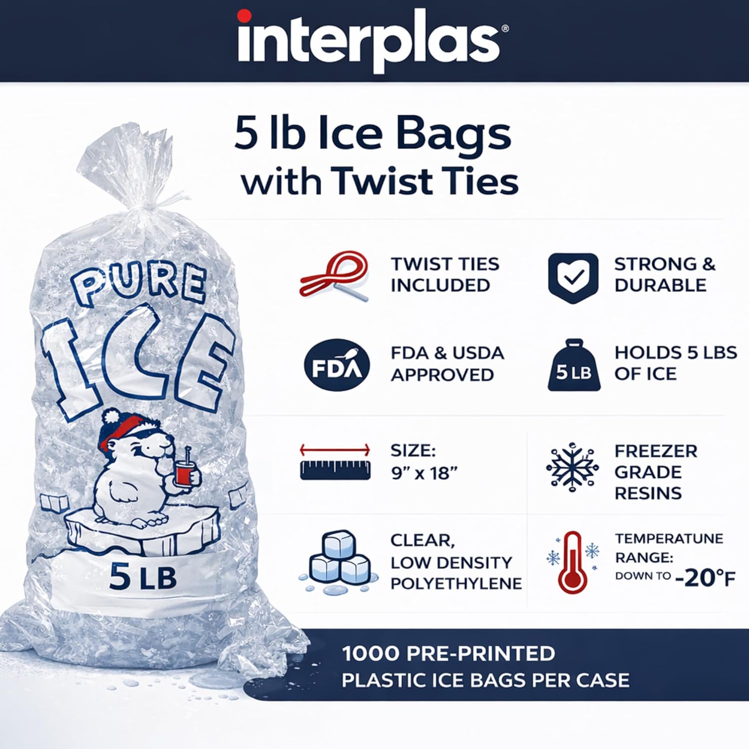 Keep your ice fresh and secure with our high-quality Plastic Ice Bags featuring convenient Twist Tie closure. Made from premium-grade plastic, these heavy-duty bags are designed to withstand freezing temperatures, ensuring they are puncture-resistant and leak-proof. Each bag holds up to 10 pounds of ice, providing ample storage for all your cooling needs, whether you’re filling coolers for a picnic or stocking up your freezer. The included twist ties make sealing the bags a breeze—simply fill the bag with ice, twist the top, and secure it with the tie to keep your ice fresh and prevent spills. The crystal clear design allows for easy visibility of the contents, making it simple to identify and monitor your ice supply. Ideal for both commercial and home use, these versatile bags are perfect for restaurants, bars, parties, camping trips, and everyday household needs. They also work great for packaging other frozen items. Made from food-safe, BPA-free materials, our ice bags ensure your ice remains pure and free from contaminants. Available in packs of 50, 100, and 200, they offer great value and flexibility, catering to both large events and regular home use. Plus, these bags are recyclable, making them an eco-friendly choice. We stand behind the quality of our products, and if for any reason you are not satisfied with your purchase, please contact us for a full refund or replacement. Ensure your ice stays fresh and secure with our Plastic Ice Bags with Twist Tie closure. Order yours today and enjoy the convenience and reliability of our premium ice storage solution.