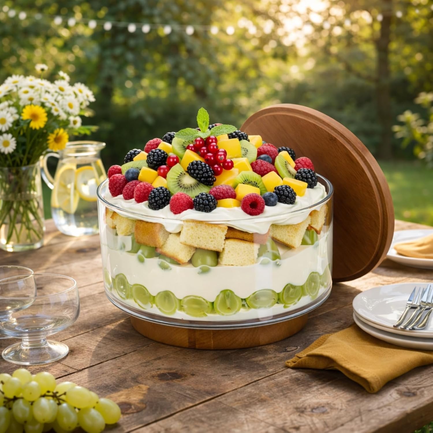 Serve with elegance and convenience using the Mowhut Large Pedestal Trifle Bowl. Made of food-grade clear glass, this 142oz (4.4-quart) bowl is microwave and dishwasher safe, featuring a fitted wooden lid to keep contents fresh. Its classic pedestal design is perfect for displaying cakes, salads, fruit, or desserts at weddings, parties, or everyday gatherings. Mowhut blends style and practicality for every occasion.