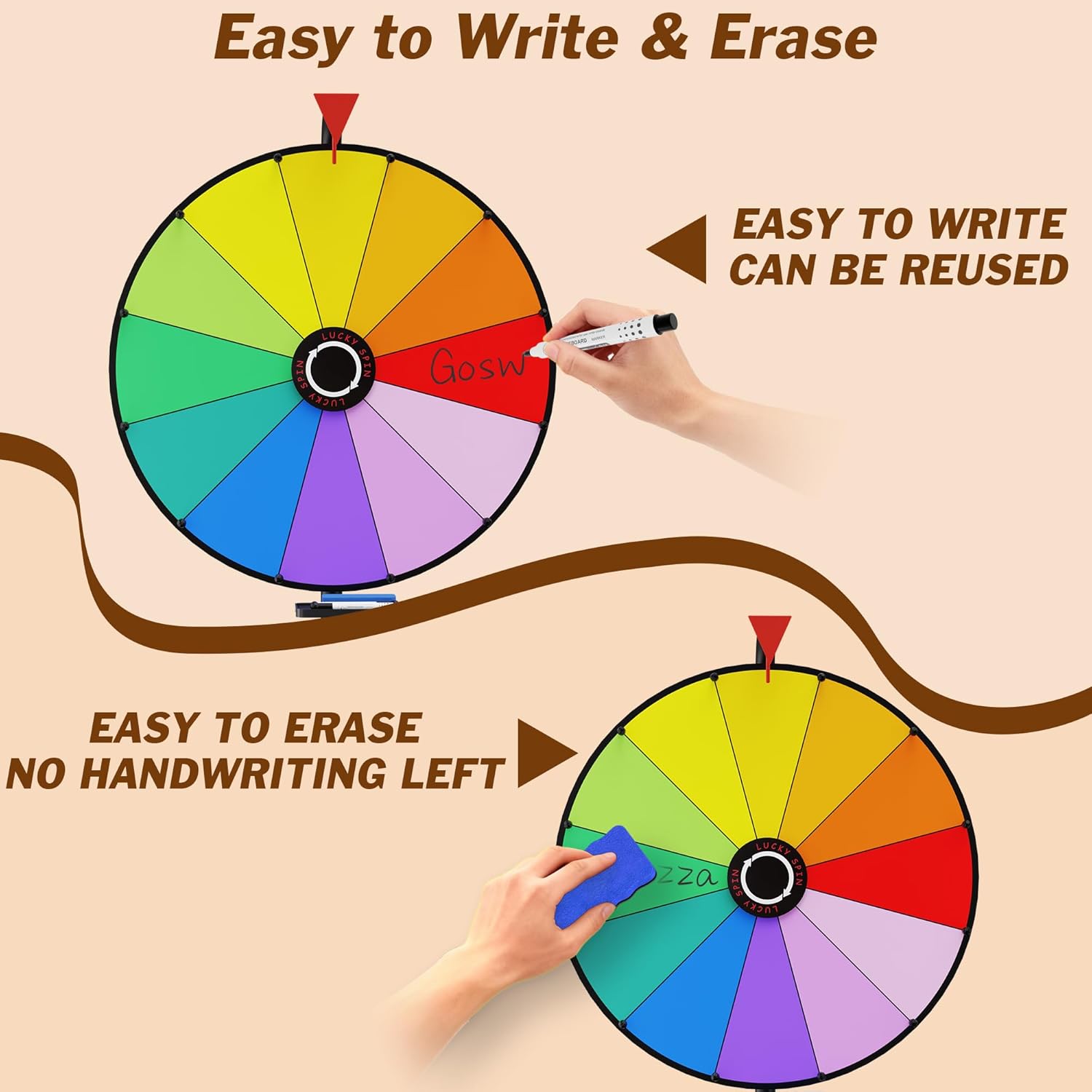 | Included Components | 16inch Color Wheel, 2 dry erase markers and eraser, Multiple sets of stoppers and pins |