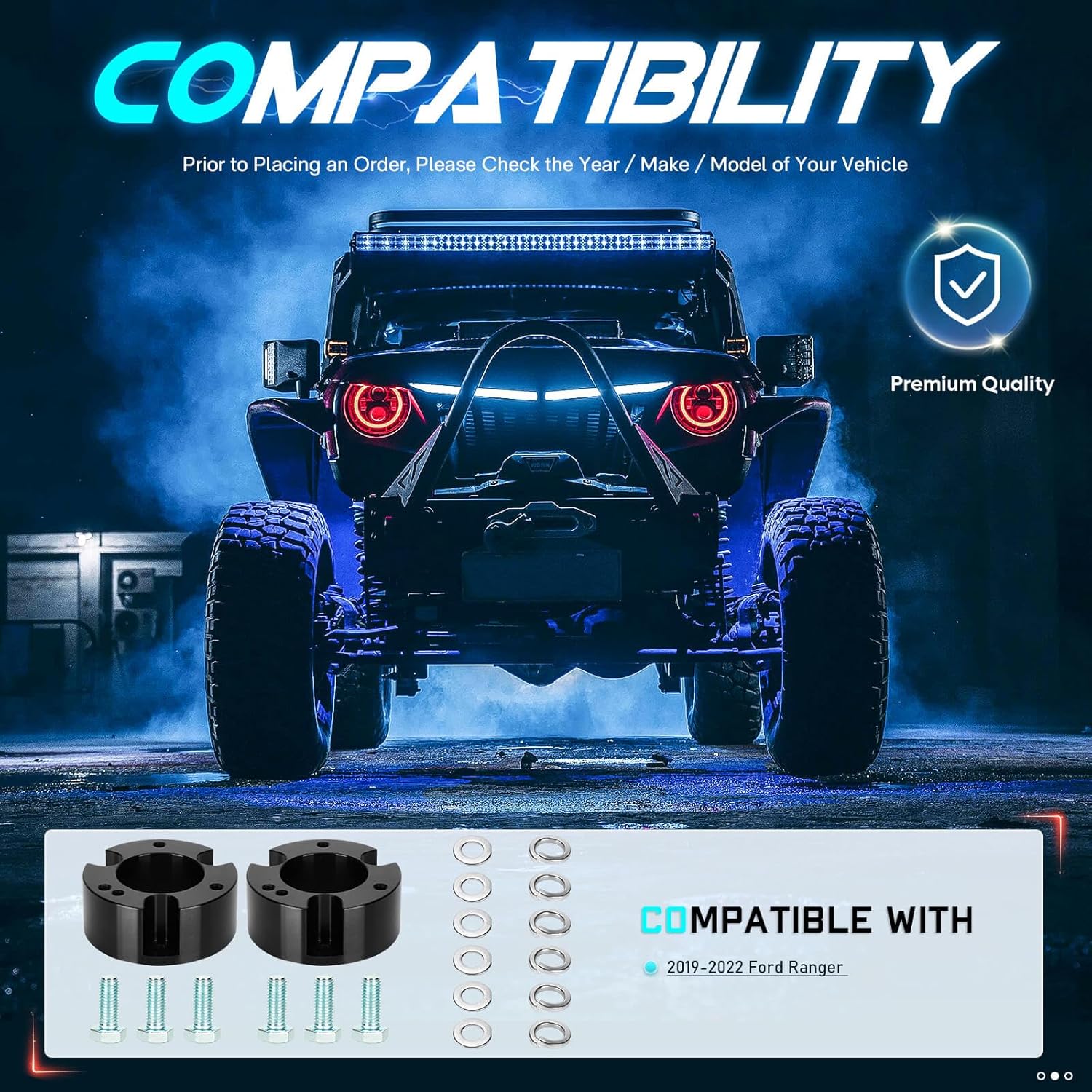 2.5" Front Leveling Lift Kit Compatible with 2019 2020 2021 2022 Ford Ranger 2WD 4WD, Raise 2.5 inch Front Strut Spacers Suspension Lift Kit, Set of 2