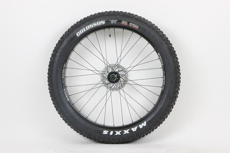 Wow! Here's an Incredible set of 27.5 inch wheels for your Thru Axle equipped Fat Bike. First, you get a set of Sun Ringle Mulefut 80 32 spoke rims for a bullet proof start. Next - these are laced to Novatec thru axle hubs with 6 bolt on rotors. 197mm x 12mm rear and 150mm x 15mm thru axle hubs. Also included are Mxs. Colossus EXO TR 27.5 x 4.50 25psi 120tpi tires and tubes with Presta Valves! BUT WAIT! You also get a 180mm front rotor and a 160mm rear rotor plus a PG cassette tool. Here are the detailed specs: CatB29wheelset Wheels Size: 27.5 X 80MM od rims Rim Model: Sun Ringle Mulefut 80 Rim Material: Aluminum Type: Single Wall with cut outs Finish (Color): Black Braking : Disc Only Disc Hubs: 6 Bolt with 160mm and 180mm rotors included Valve Hole: Presta Spoke Material/Type: black Stainless Steel 14g Spoke Count: Front: 32 Rear: 32 Lacing: 3 cross Nipple: Brass CP Finish Cassette Compatibility: 8,9 and 10 speed PG cassettes Hub Material: Forged Aluminum Hub Finish: Black Hubs: Novatec Precision Ball Bearing Axle Type: Thru Axle Hub Spacing: Front - 150mm x 15, Rear - 197mm x 15mm Tires: Maxs. Colossus 27.5 x 4.50 25psi 120 tpi EXO TR
