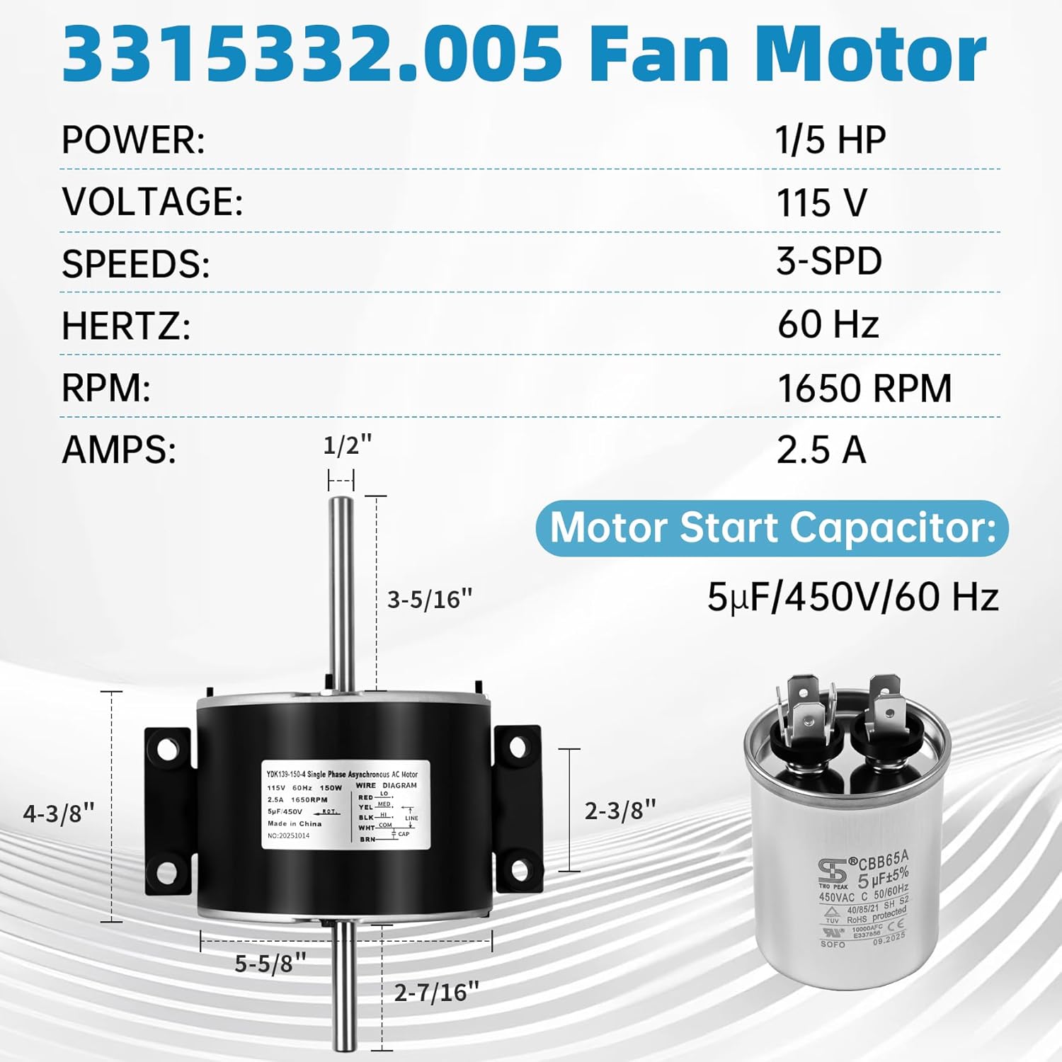 | Included Components | 3315332.005 Fan Motor and Dedicated Start Capacitor |