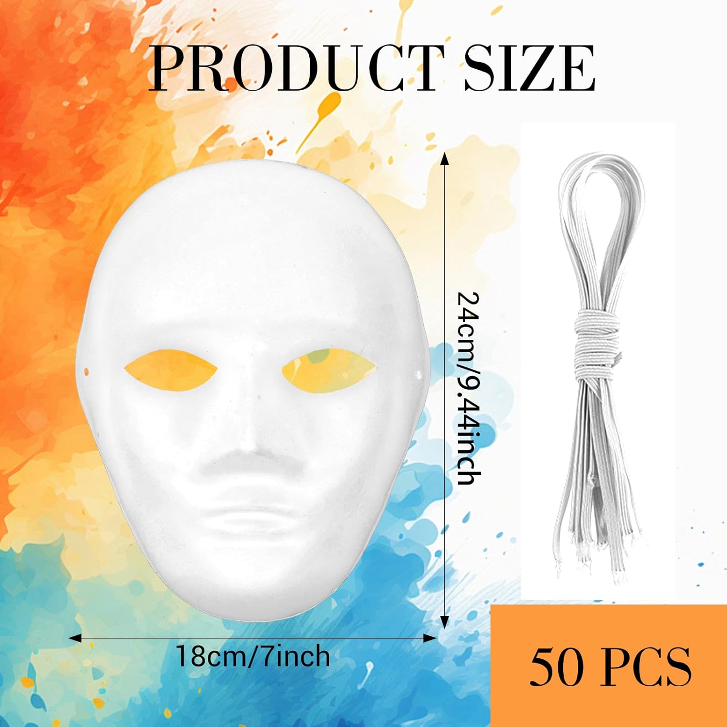 Welcome to our store!Features:High-Quality Materials: This Halloween mask for women is made from high-quality natural paper mache material that is recyclable, lightweight, non-toxic, reusable, and durable.The blank mask is perfect for imaginative painting. You can create your own unique mask or turn it into a beautiful handmade piece for children to paint and decorate in art class.Specifications:Material: PulpColor: WhiteSize: 7.5 x 9.4 inches/ 19 x 24 cmPackage Includes:50 Pcs x Paper Mache Masks BulkNotes:Manual measurement, please allow slight errors on size.The color may exist a slight difference due to different screen displays.