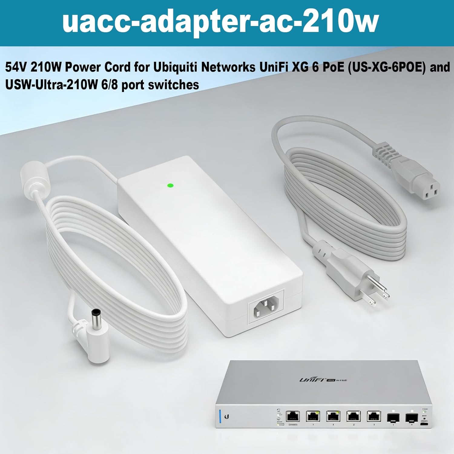 | Compatible Devices | 54V Power Adapter for Networks UniFi XG 6 PoE (model US-XG-6POE) and USW-Ultra-210W 6/8 port switches |