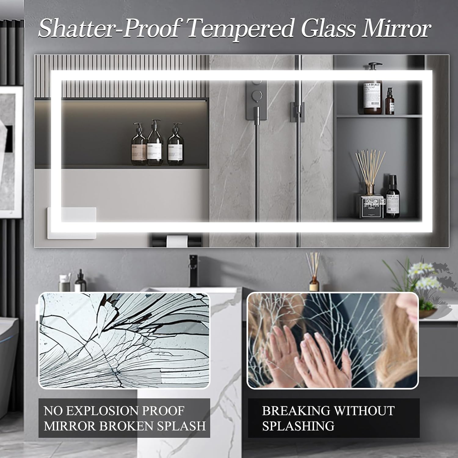 72" x 36" LED Bathroom Mirror with Anti Fog and Touch Sensor Frameless Lighted Wall Mirror for Bathroom Vanity, Shower Room, or Dressing Area