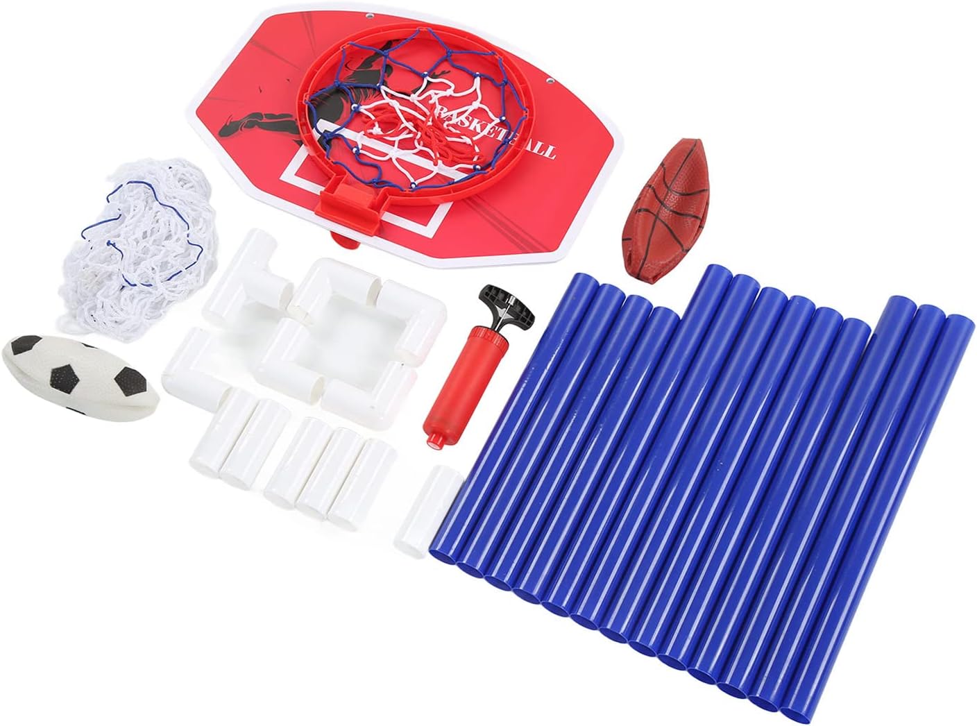 1. Exercises Motor Skills: Encourage your little one to stay active while improving their hand eye coordination skills, aim and practice their slamming, kicking and hooking skills. 2. Outdoor and Indoor Play: You can take this activity center everywhere, can play outdoor and indoor. Take it to the park, beach, play in the yard, or just stay at home with it. 3. Great Sport Gift for Kids: Encourage and share your passion for sports with your kids. This set provides a combination of exciting games that will help parents to keep their kids active, fit and having fun all year long! 4. Easy Assembling: Assembling is super easy, you don't need to use any extra tool to put it up together. Give your toddler a safe area in which to play, this kids sport center can be used to play basketball, soccer games. 5. Safe Material: Made of ABS plastic, BPA free, non toxic and harmless, light weight to keep your little ones safe and to avoid any damage to your indoors! Children will enjoy great fun playing with it! Spec: Item Type: Basketball and Football Sports Set Material: ABS Color: As Pictures Shown Weight: Approx. 1.103kg / 2.4lb Suitable for Age: Over 3 Ages Package List: 13 x Plastic Tube 12 x White Casing 1 x Small Football 1 x Small Basketball 1 x Pump 1 x Basketball Hoop 1 x Football Net Notice: Monitor calibration is inconsistent and item colors shown in photos may differ slightly from actual objects.