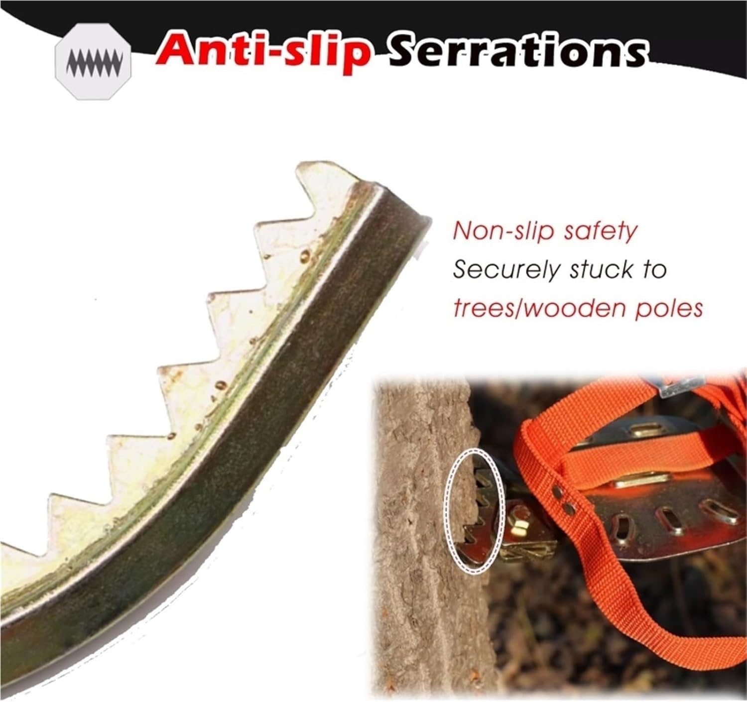 Conquer slick poles with confidence! Our thick, ergonomic anti-slip rubber pedals mold to YOUR foot’s shape, giving superior grip and all-day comfort. Feel stable stepping down, even on wet surfaces. Plus, the safety lanyard is your lifeline – always attached, always secure.Material: Manganese steelModel opening diameter:Type 250, opening diameter: 13-25 cm;Type 300, opening diameter: 15-30 cm;Type 350, opening diameter: 19-35 cm;Type 400, opening diameter: 20-40 cm;Type 450, opening diameter: 22-45 cm;Type 500, opening diameter: 20-50 cm;Load Capacity: 150kg/330 lbsSuitable? Cement poles/ Wire poles etc.Advantage?Adjustable 250-550mm20mm manganese steel, rust-resistant1,000+ tests ensure 5-10 years outdoor useAnti-slip rubber pads fit feet, no slipping in rain, stable and comfortable150kg (330lbs) load capacity, no shaking at height, reduces fall riskWith safety lanyard, extra protection for safer climbingNo need for tree steps, fits trees and concrete poles directly, simplifies climbingErgonomic pedal design reduces fatigue during long-time workSuitable for fruit picking, pole inspection, jungle survival, etc.Tool-free adjustment, quick fitting done by handPacking list:1 x pole climbing spikes1 x safety strapNote:For beginners, we recommend that you practice using the tool in a small area (e.g. less than approx. 1 metre/39.37 inches). Once you have mastered the method, you will be able to overcome any pole easily.