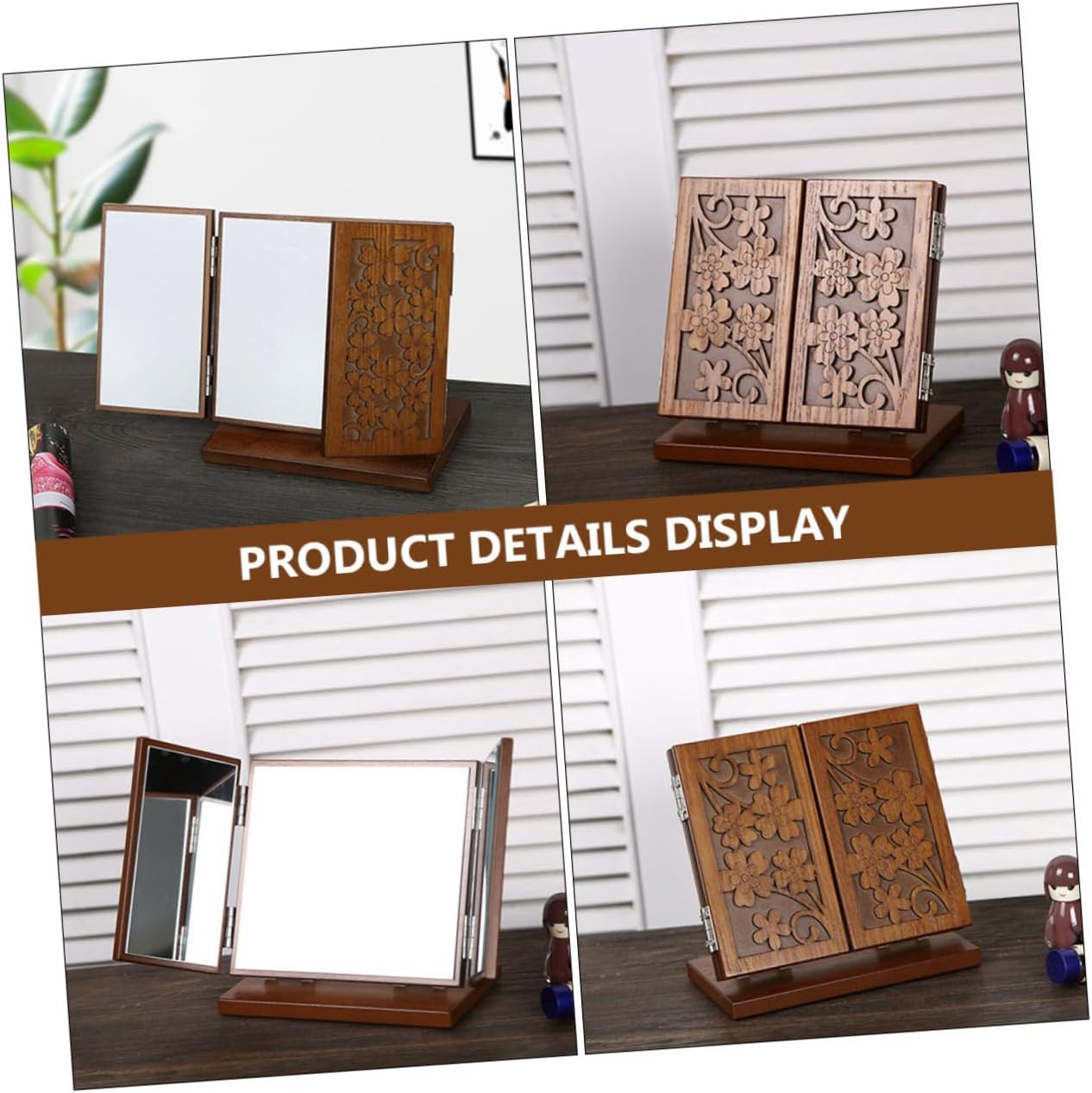 Package List 1 x makeup mirror Features - Material: Wood, Glass Desktop Girl Mirror - Color: As shown tri fold table mirror - Size: About 18.00X17.50X10.00cm/7.07X6.88X3 Household Makeup Mirror. - As a practical makeup mirror, it is suitable for the use in the home, dormitory and office vintage vanity mirror. - The makeup mirror features the compact size, without taking up too much space on the desktop Makeup Mirror for Home Use. - The mirror is made of high class materials, which can be used for the long time trifold vanity mirror. - The mirror surface is clear and smooth, , offering you a realistic reflection dresser mirror. - The mirror comes with folding structure design and flexible hinges, making it reliable to use trifold mirror.Goods DescriptionIndoor Desktop Mirror This makeup mirror is made of , which can withstand the long-term use.wood dressing table mirror Foldable structure design, making it practical to use.Vanity Are you looking for a practical and chic makeup mirror for the daily use? If your answer is yes, this product will be for you.shaving cosmetic Suitable for home, dormitory and office use
