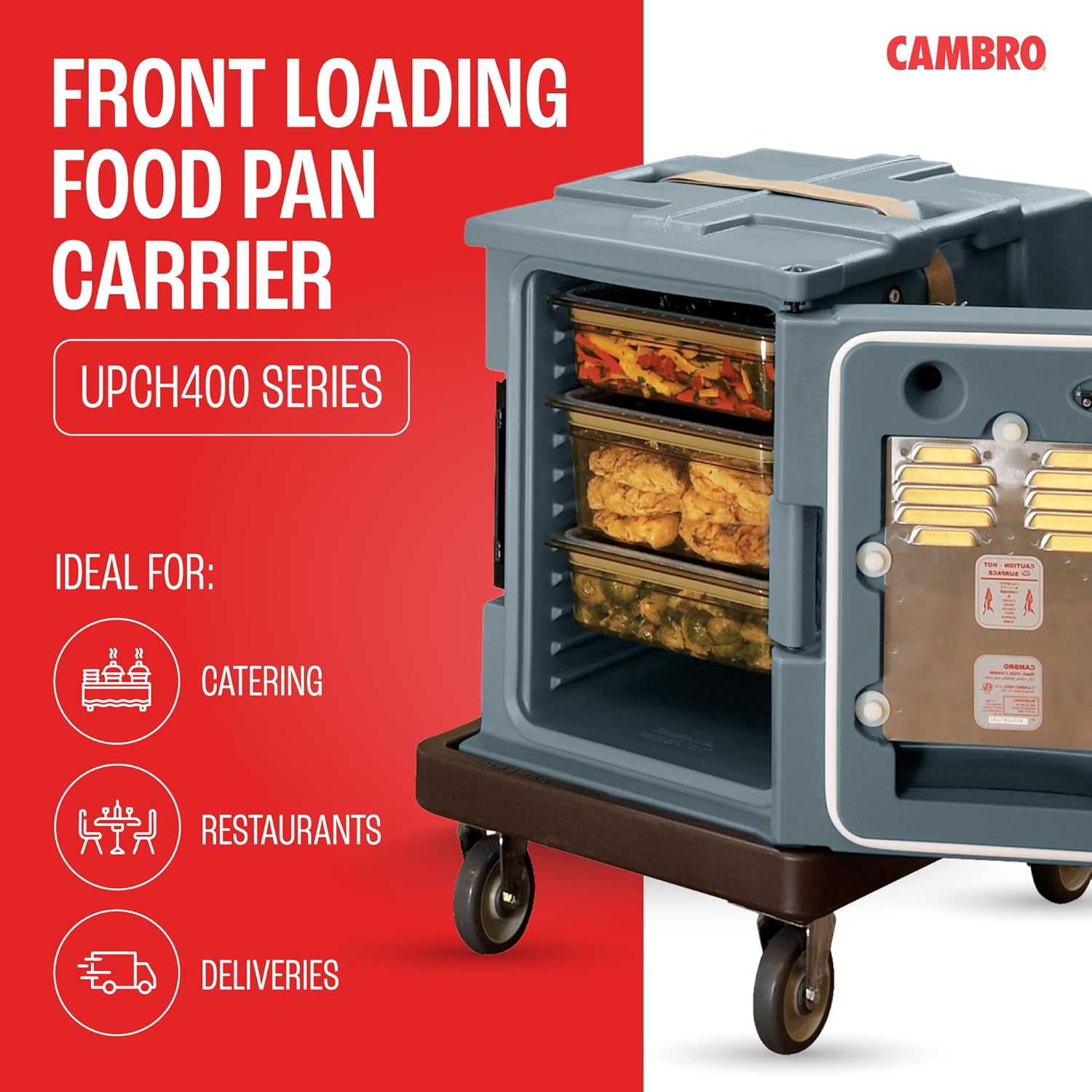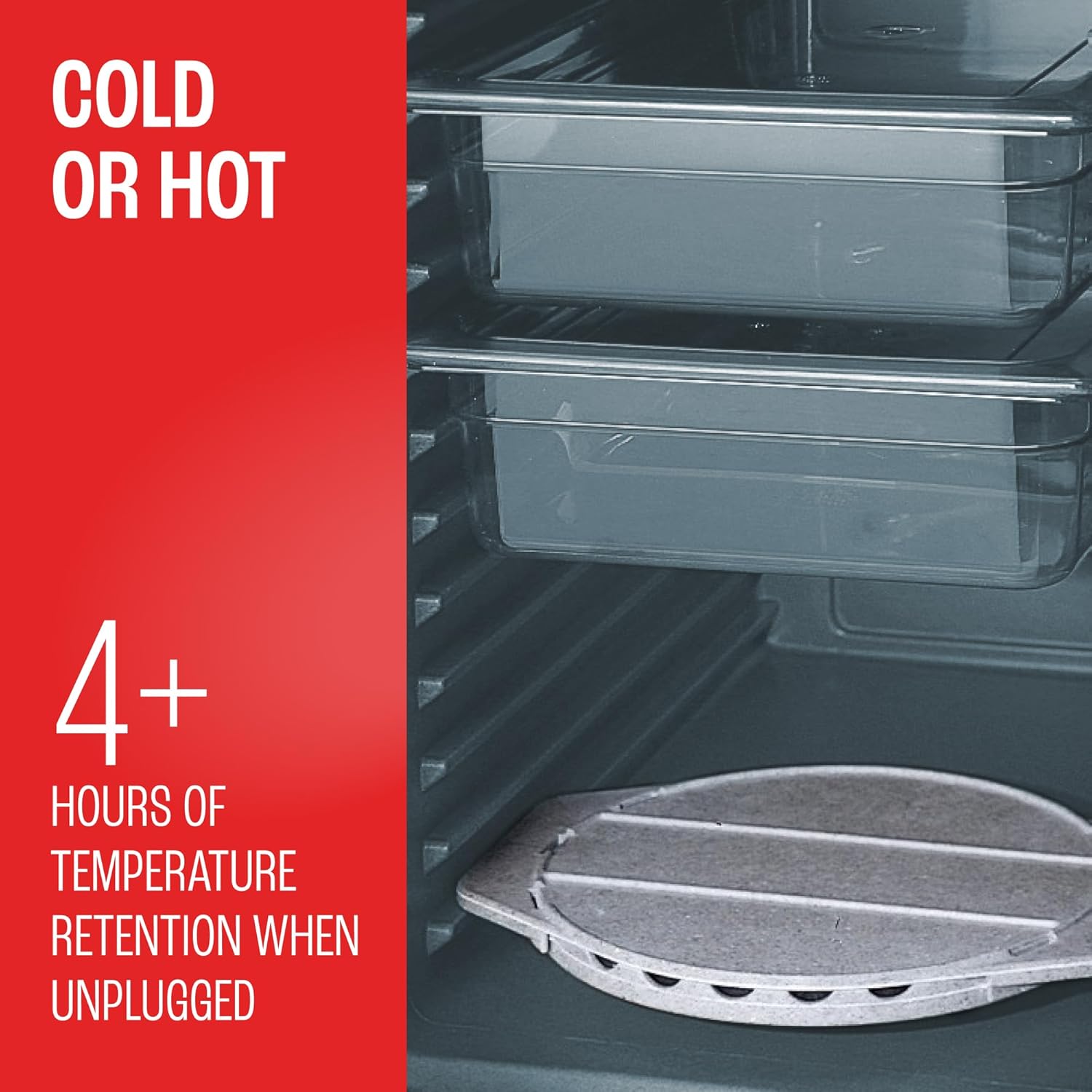 With the incredible durability and hot holding power of the Ultra Pan Carrier H-Series, your catering will be revolutionized. The UPCH400 is designed for both electric and non-electric transport, with gentle, non-radiant heat to protect, not dry out carefully prepped food. This is ideal for long transport times and limited electrical outlets during banquets and outdoor events. Rotomolded for one-piece, seamless construction, this carrier features ergonomic, unbreakable molded-in handles for two-person carrying and a convenient nylon latch for fast access. Our thick CFC-free insulation safely holds prepared foods for 4+ hours without electricity, with a quick one hour preheat and three-minute heat recovery time when plugged in. Choose a hot catering solution that won’t rust, dent, or disappoint – the Ultra Pan Carrier H-Series!.