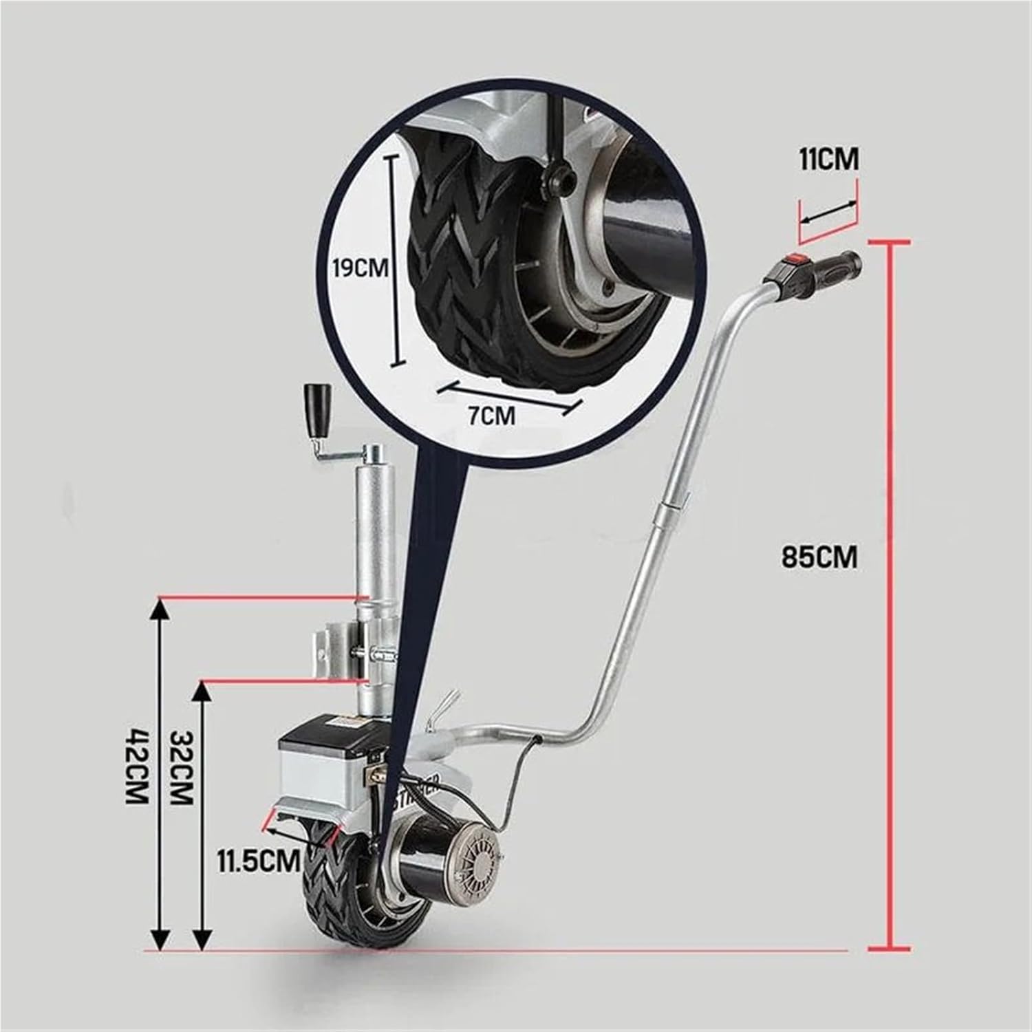 Introduction: The car shifter allows you to easily move your car and truck. This wheel has forward and backward and automatic braking functions. It also has a large anti-skid wheel that can be used at a slight tilt, so it can transfer your precious car to an awkward position. This car needs to be connected to a 12V battery to be able to use it. For example, when towing a car, connect the battery on the car. It does not have a battery. General tips for safe operation: 1. Its bearing capacity is about 2270 kg, and the load is about 272 kg. Overload may damage motors, tires, etc. 2. Before starting operation, check whether the handle positioning key is fully tightened. 3. Check whether the battery lead is correctly connected to the battery terminal. 4. Do not use flattened or any damaged leads. 5. Avoid rainy days when using the machine in the open air. Feature: Traction-350W motor Forward and reverse control Automatic brake Heavy-duty solid rubber wheels parameter: Inclination: about 5 degrees Maximum weight: about 2270 kg Wheel load: about 272 kg Adjusted holder height: 32 cm / 42 cm Tire diameter: 19 cm Gear ratio: 326:1 Maximum speed: about 6-7 meters per minute Braking: automatic braking Packing size: 74*34*29cm Package weight: 15kg Noties: Manual measurement, please allow slight errors on size. The colors may exist slight difference due to different screens.
