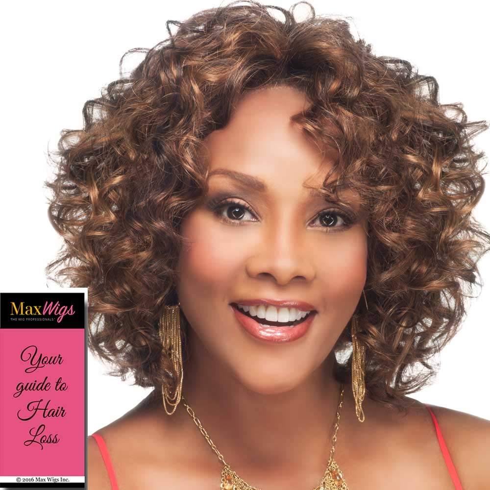 The Chilli by Vivica Fox is a classic short synthetic wig. This wig features tons of soft layers all over to give volume and movement. The lace front extends ear to ear to give you the most realistic front hairline ever. The lace front invisibly blends into your skin with easy self application. The lace front can be attached using the special adhesive kit or toupee tape and then blended with makeup. It has a total stretch cap to give you maximum comfort. Chilli-V Wig Color 1 - Vivica Fox Wigs 12" Lace Front Soft Layers Loose Curly Heat Resistant Synthetic Babay Hairs African American Black Womens Bundle MaxWigs Hairloss Booklet. Hair color images are presented to give you a visual representation of color options for each item. However it must be noted that screen representations do not necessarily, precisely represent actual colors due to variable monitor calibrations. Additionally, the computer or device you use may have an impact on how colors appear.