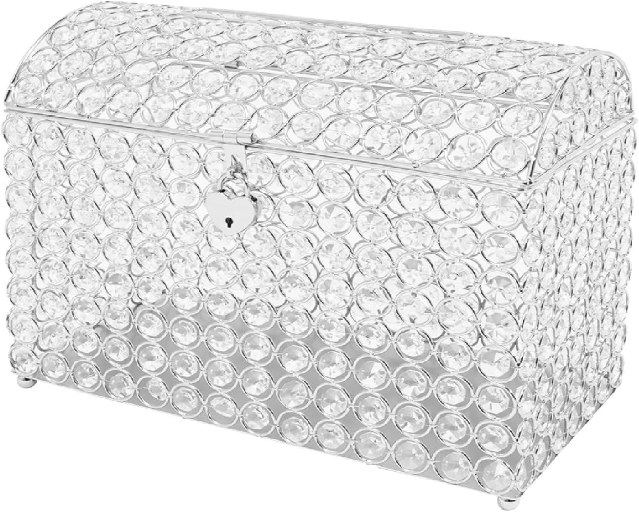 DetailsTop Slot: The long card slot makes it convenient for you to drop items inside the box.4 Rounded Steel Balls: They can enhance the stability of this product, and the rounded surface can also better protect your desktop.Smooth Edges: The rounded and smooth edges not only add to the aesthetics of the product but also improve the safety of use.ApplicationThis wedding card box with heart lock is suitable for bedrooms, dressers, wedding receptions, engagement ceremonies, anniversaries, birthdays, parties, coffee shops, libraries, and any countertops. It is ideal for organizing greeting cards, wedding invitations, cards, envelopes, stamps, photographs, donate cash, or tips. It can be used as a wedding card box, a decorative box, a gift box, a memory box, a honeymoon fund box, a wishing well box, a donation box, a piggy bank, and a suggestion box.SpecificationsColor: Clear, Gold/SilverStyle: ModernMaterial: Iron, Glass, SteelProcess: ElectroplatingMount Type: TabletopAssembly Required: NoGross Weight: 1.94kg/4.28lbs Net Weight: 1.84kg/4.06lbsProduct Size: 31*16*25cm/12.2*6.29*9.84inPackage Size: 35*18*26.5cm/13.78*7.09*10.43inPackage Included1* Wedding Card Box1* Lock1* KeyNotes1. Please note this product does not include any card.2. Please pay attention to the size before purchasing.