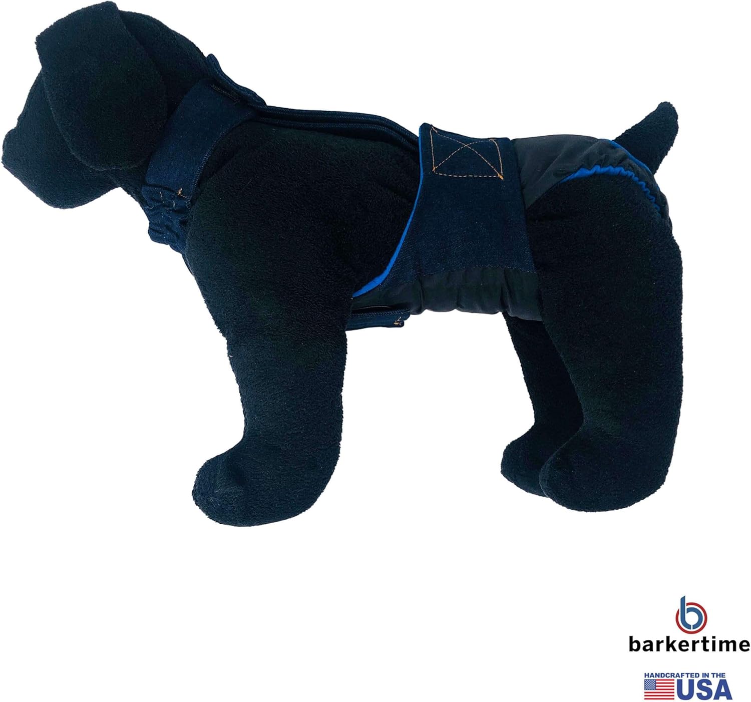 Handcrafted to perfection so your furbaby can stay clean and comfortable while you have complete peace of mind. The Barkertime Escape-Proof Dog Diaper Overall is suitable for both male and female dogs with incontinence issues, behavioral marking, excitable urination or females in heat. Specifically designed for the ''Houdini'' escape-artist dogs that have difficulty keeping diapers on. The best Full-Body Suit solution for your furbaby available in hundreds of prints and designs. Designed and handmade by Barkertime in Huntington Beach, California USASize ChartPlease go up one size if your dog is between sizes Size XS: Waist 9 - 2 inches, Neck 5 - 8 inches, Neck to Waist 5 - 7 inches, Neck to Tail 10 - 12 inches Size S: Waist 12 - 15 inches, Neck 8 - 11 inches, Neck to Waist 7 - 10 inches, Neck to Tail 10 - 13 inches Size M: Waist 15 - 18 inches, Neck 12 - 15 inches, Neck to Waist 10 - 13 inches, Neck to Tail 13 - 17 inches Size L: Waist 18 - 22 inches, Neck 16 - 19 inches, Neck to Waist 12 - 17 inches, Neck to Tail 13 - 22 inches Size XL: Waist 22 - 30 inches, Neck 20 - 23 inches, Neck to Waist 14 - 20 inches, Neck to Tail 20 - 26 inches Size XXL: Waist 30 - 43 inches, Neck 23 - 26 inches, Neck to Waist 17 - 25 inches, Neck to Tail 27 - 36 inches Check out Barkertime on Amazon for more options for pet diapers, incontinence products, pet fashion items and other accessories made in USA.