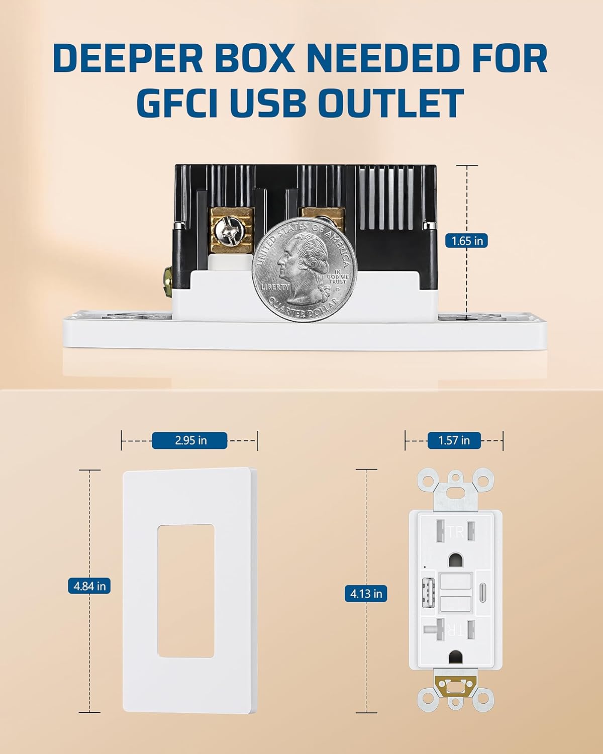 DEWENWILS GFCI Outlet 15 AMP, Outdoor GFCI Outlet with USB Ports 30S Self-Test with Indicator Light, Tamper-Resistant Standard Electrical Outlets, Screwless Wall Plate, Clamping Plate, ETL Listed