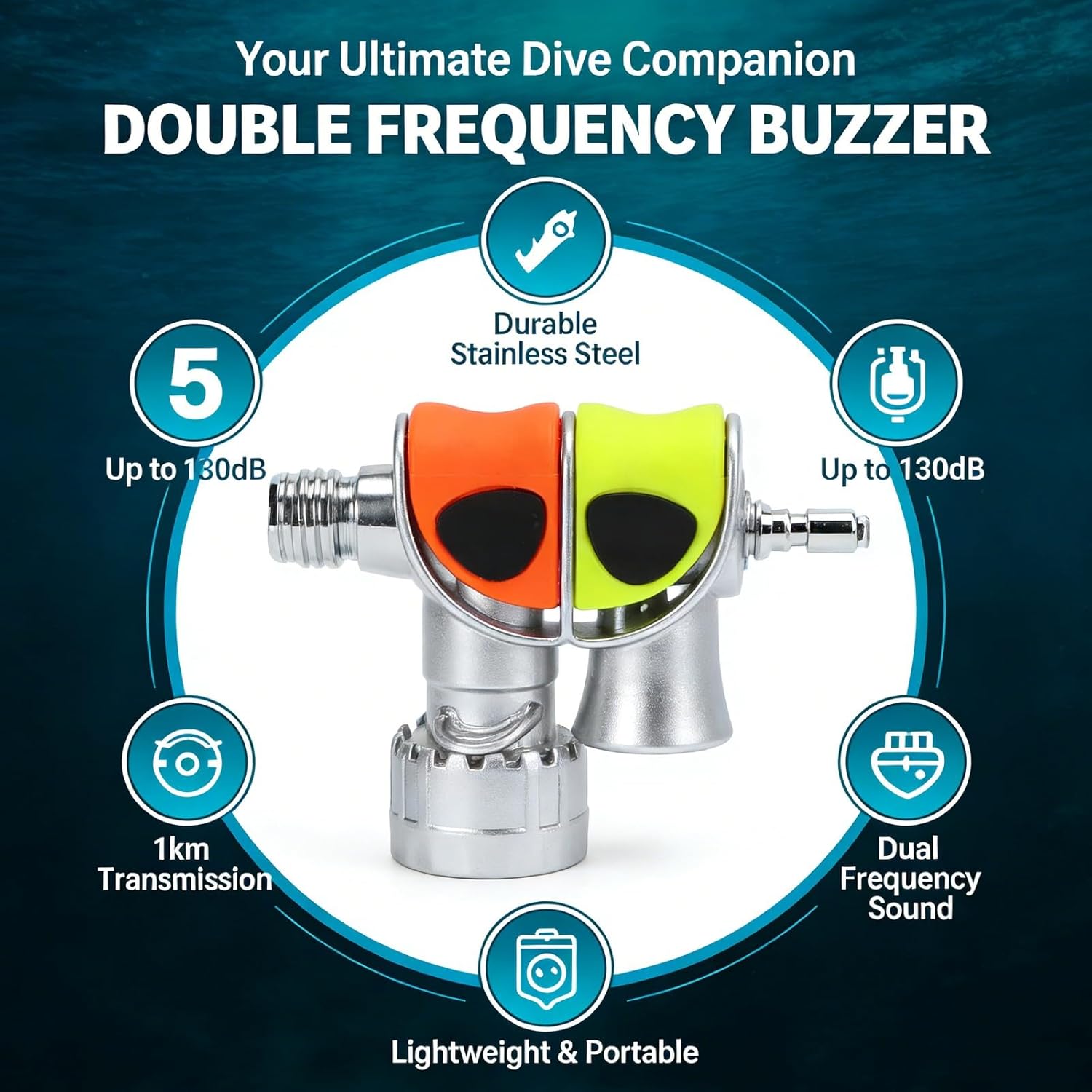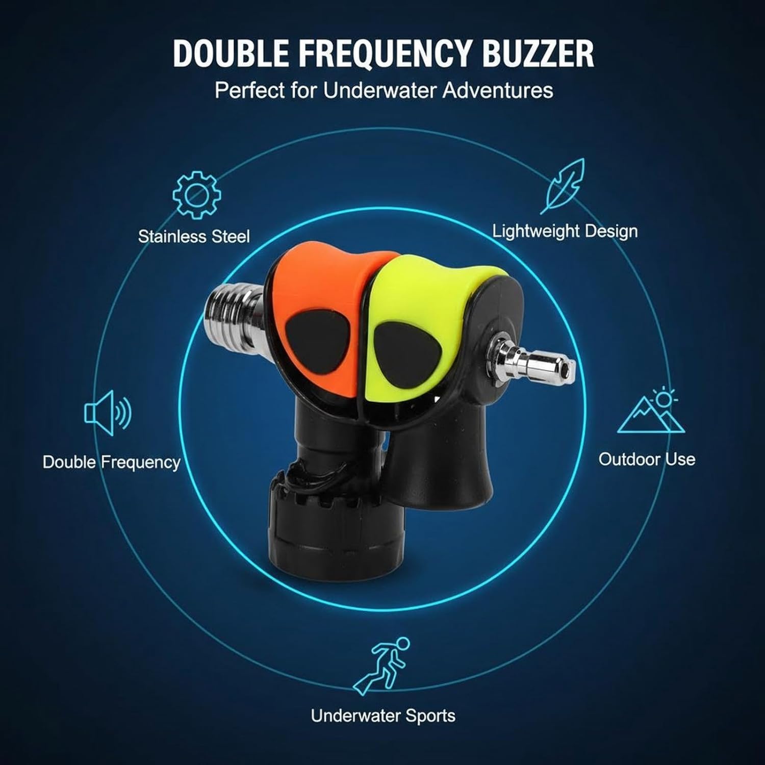 Item Type: Double Frequency Diving BuzzerMaterial: Stainless SteelColor: As Picture ShownApplication: For Outdoor Activities, Underwater SportsWeight: Approx.213g/7.5ozPackage List: 1 x BuzzerNote:1.Because the sound is loud, please press the buzzer away from the ear, otherwise there is a potential risk of hearing loss.2.After each dive, clean it with water as soon as possible. If it is not thoroughly cleaned, it will affect the use efficiency of the diving buzzer, and avoid exposure to the sun.