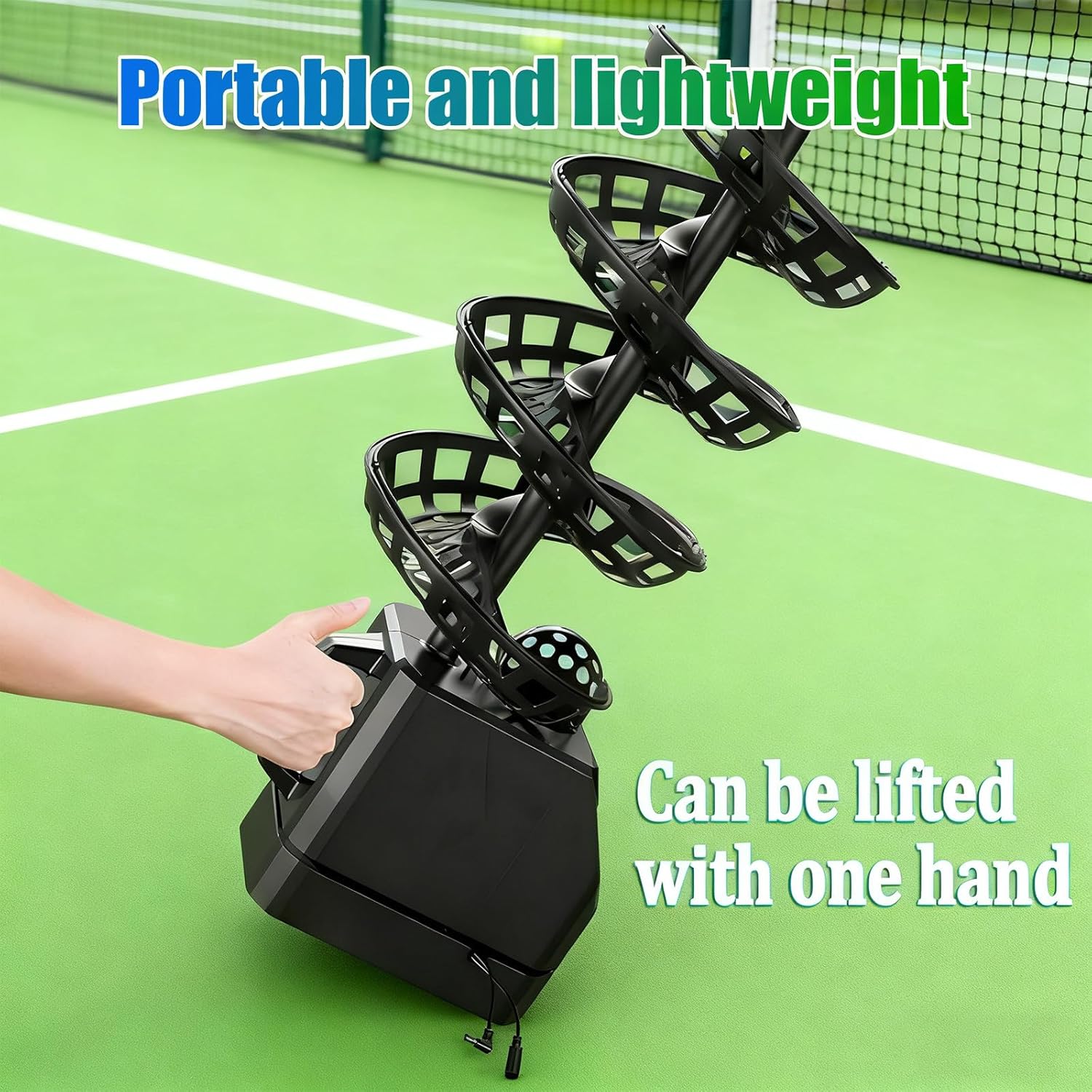 ★★Still struggling to find a sparring partner and prevent you from practicing tennis anytime? Are you struggling to improve your skills because your training paths are out of touch with real-world practice and your touch feels off? ★Automatic tennis serving machine: It breaks all the constraints of time and space, allowing you to enjoy professional-level training anytime, anywhere, comprehensively improving core skills like forehand, backhand, and volleys, effectively improving your tennis skills!★★Advantages:✔ The serving path is true to real competition, and the feel of the ball is just like on-court play. It allows you to practice a variety of core skills, including forehand, backhand, volleys, baseline, short balls, overhead shots, and footwork, allowing you to quickly improve your technique and reflexes through repeated practice. ✔ The main body is made of ABS, with an all-metal motor and alloy bracket, providing a stable and durable structure suitable for adults, teenagers, and children. ★★Specifications:Material: ABS + All-Metal Motor + Alloy BracketBall Storage Capacity: 33 standard tennis balls / 27 pickleballsMaximum Throwing Distance: 1.2m - 3.5mHeight Adjustment Range: 60-105cm (23.6-41.3 inches)Ball Output Rate: 11-30 balls per minuteControl Method: Remote Control (Supports Start/Stop, Mode Adjustment)Packaging Weight: 6.1kg (13.24 lbs)Packaging Dimensions:-Ball Machine + Bracket: 68*18*45cm (26.8*7.1*17.7 in)Power Supply: AC220V/110V Battery Life: Approximately 10 hours★★ Packing List:1 x Tennis Ball Machine1 x Remote Control1 x Charger1 x Adjustable Height Tripod7 x Tracks★★ Note: If you have any questions, please email us and we will respond within 24 hours.