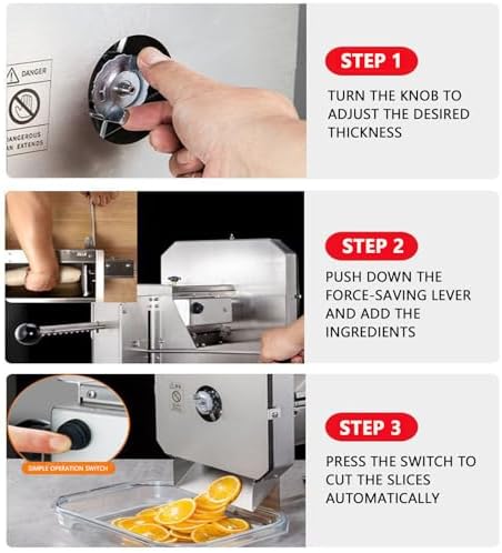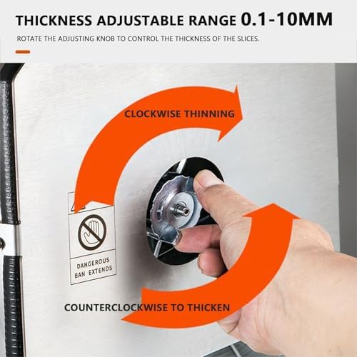 This electric vegetable slicer is designed to enhance kitchen efficiency, making meal preparation straightforward. It is a multi-functional slicer suitable for home cooks and restaurant chefs, offering convenience and enabling creative culinary possibilities. Product Specifications: Material: 304 Stainless Steel Blade Power: 96 Watts Voltage: 110V-240V Cutting Thickness: 0 to 10 mm / 0 to 0.4 inch Adjustable Food Container Dimensions: 25 x 12 x 11 cm / 9.84 x 4.72 x 4.33 inch Color: Silver Gross Weight: 9.7 kg / 21.38 lbs Net Weight: 8.8 kg / 19.4 lbs Packaging Dimensions: 44.9 x 32.7 x 43.6 cm / 17.67 x 12.87 x 17.16 inch Package List: 1 Electric Slicer 1 Handle 1 Power Cord 1 Blade Precautions: This product is not waterproof; do not immerse it in water. The blade is extremely sharp; do not touch the blade directly with your hands during operation or assembly. Before use, ensure the protective cap is properly closed. Always use the food feeder to feed food into the blade; never use your hands.