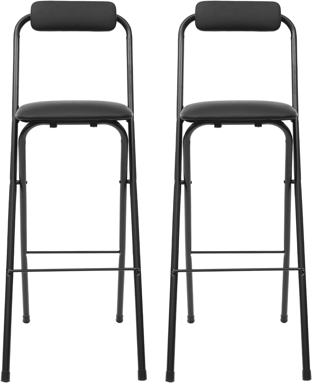 DescriptionLimited space, unlimited style - our folding bar chairs match your modern lifestyle. The folding design and appropriate size allow you to easily store and save space. Reinforced structure ensures excellent load-bearing capacity, allowing you to sit comfortably. Fashionable appearance embellishes home or commercial spaces. Choose us and enjoy the combination of convenience and comfort.DetailsPVC Caps: They can provide excellent anti-slip properties, reduce noise, prevent scratching of the floor, and make use safer and more comfortable.Rounded Corners: They not only enhance the beauty of the product but also better care for your hands and other parts.ApplicationThis product can be widely used in kitchens, dining rooms, living rooms, study rooms, bedrooms, balconies, offices, bars, dining halls, cafes, milk tea shops, dessert shops, and other places.SpecificationMaterial: Carbon Steel, PU, Sponge, PVC, Glued Board, HardwareProcess: Electrostatic Baking PaintColor: BlackStyle: ModernMount Type: FreestandingAssembly Required: NoMax. Load Capacity: 125kg/275.58lbsPipe Diameter: 22.65mm/0.89inFolded Thickness: Approx. 70mm/2.76inFolded Product Length: 114cm/44.88inApplicable Desktop Height: 105cm/41.34inSeat Height: 75cm/29.53inProduct Size: 42*48*105cm/16.54*18.9*41.34inPackage Size: 112*45*8cm/44.09*17.72*3.15inGross Weight: 4.8kg/10.58lbsNet Weight: 4.3kg/9.48lbsPackage Included1 * Foldable Bar Chair