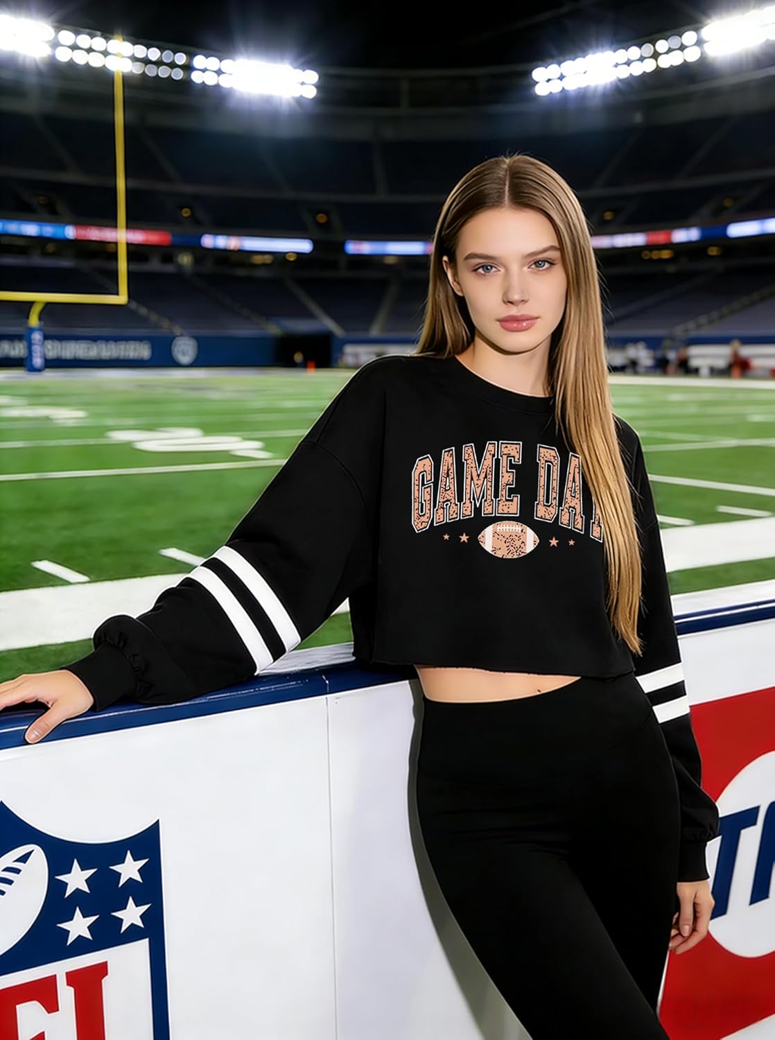 RECUTEWU Football Shirts for Women: Game Day Long Sleeve T Shirts Team Fans Gameday Sweatshirt Crop TopsBasic cropped sweatshirts is unique and charmig, sleeve with design, crew neck long sleeve blouse teesIt's an ideal game day football shirts to anybody, womens sweatshirts is suit for all seasonSIZE CHART: S---Bust 44.09"---Sleeve 23.23"---Length 18.90"---M---Bust 45.67"---Sleeve 23.62"---Length 19.29"L---Bust 48.03"---Sleeve 24.02"---Length 19.69"XL---Bust 50.39"---Sleeve 24.41"---Length 20.08"2XL---Bust 52.76"---Sleeve 24.80"---Length 20.47"