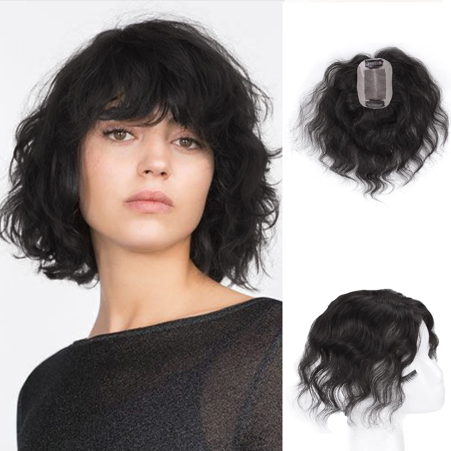 Save Your Hairline Small Area Short Curly Wave Human Hair Topper Clip on Top Hair Piece Real Hair Toupee for WomenKindly Notes:This is not a full wig,it's only a hairpiece for hair replacement,it is perfect for covering small area grey hair or loss hair. 1. Item : Women Wave Curly Topper clip in human hair. 2. Hair Color: Black.Colours may look little differently on each monitors 3. Mono Base Size: 7x10cm/2.7x3.9" handmade lace base ,only can coverage small area hair loss. 4. Hair Material: 100% Human Hair 5. Hair Texture: Natural Curly Hair (Package transportation will maybe deformed,because it is wavy hair,restyle is ok) 6. Clip Hair Quality:high quality,Dense and very soft remy human hair 7. Hair topper length: 7" 8. Craft: ★ Tangle Free and Shedding Free. Can Last Around 8 Months for Good Care ★ Can Be restyled. ★ Invisible Clip . Natural Hair Line ★ 100% Real Human Hair Guarantee ★ Clips With High Elastic Which is Comfortable,Firm