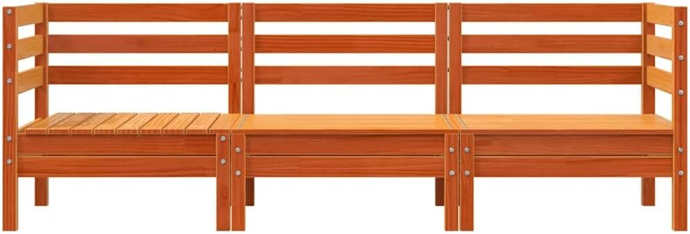 This 3-Seater Garden Sofa is the perfect mix of comfort and style for your outdoor space. With a rustic vibe that fits gardens and patios, it's made from solid pine wood and has a lovely wax brown finish, making it stylish and durable for outdoor lounging.Modular Configuration: Adjust your seating layout to fit your needs with the modular style, perfect for any garden setting.Rustic Aesthetic: The solid pine wood and wax finish provide a lovely rustic charm, creating a warm outdoor atmosphere.Durable Construction: Solid pine wood ensures a sturdy build, ready to handle outdoor conditions and support up to 242.5 lbs.Comfortable Seating: Designed for three people, it offers plenty of room for family or guests.Easy Maintenance: Just wipe down with a damp cloth and use a cover when not in use to keep it looking sharp.Color: Brown Shape: RectangularMaterial: Solid Pine WoodFinish: Waxed Indoor/Outdoor: Outdoor OnlyCover Included: NoRoom: Garden and terraceMaximum Number of People: 3Maximum Weit: 242.5 lbsDimensions: 25.0 x 75.0 x 24.6 in (W x L x H)Weight: 45.42 lbsSeat Depth: 23.6 inSeating Capacity: 3Swings: NoDelivery Contains: 2 x Corner sofaAssembly Required: YesRecommended Number of People for Assembly: 2