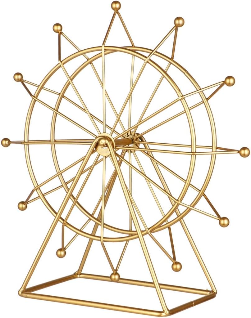 Color: Gold Material: Iron Size: 8.6*3.5*9 in Package Includes: 1*Ferris wheel home decor Note: - Please refer to the measurement. Tiny measuring error is allowable in normal range. - There might be a little color difference due to the monitor, camera or other factors, please refer to the physical item.