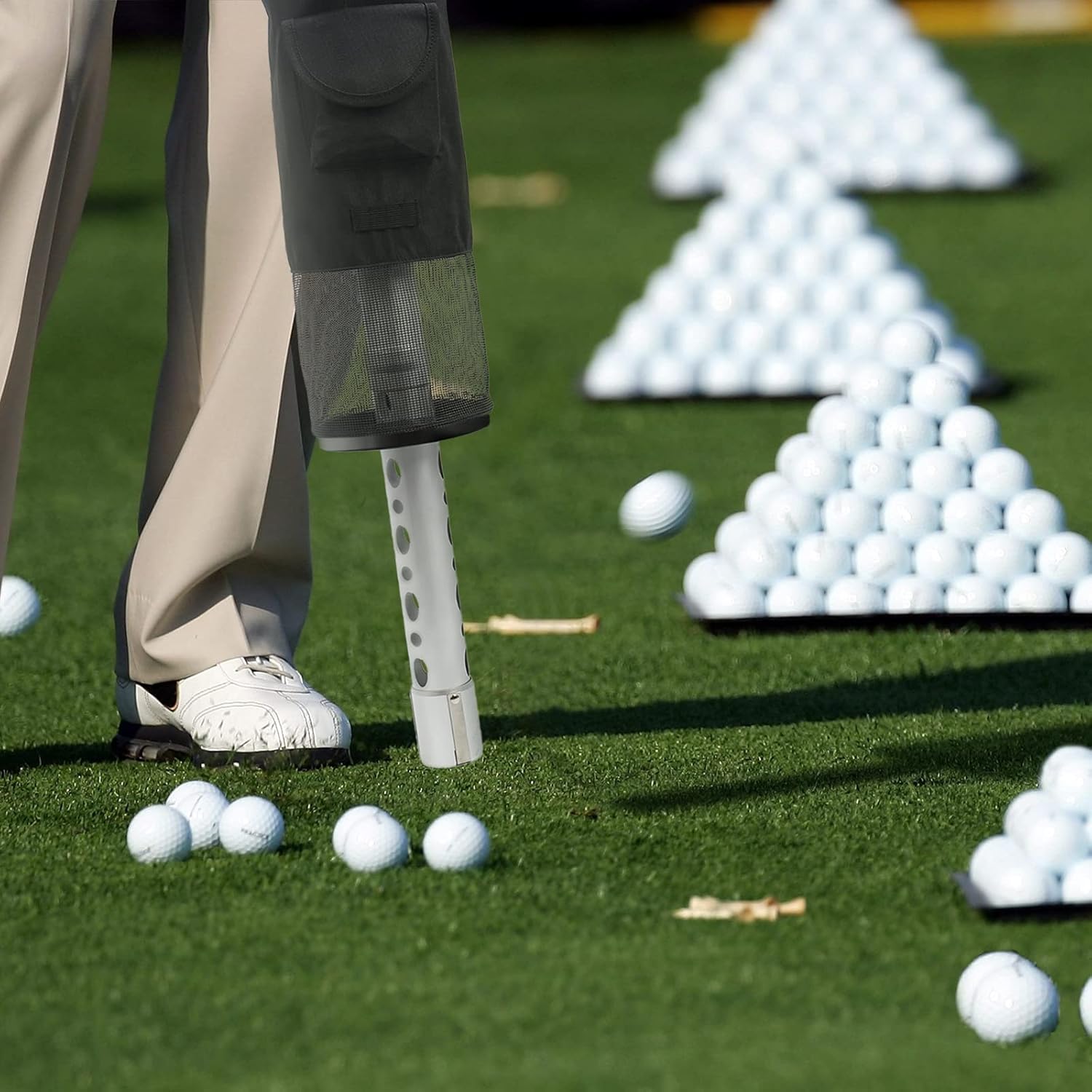 No Pain! More Gain! Golf is one of the sports that you need to consistently practice for, while it’s important to repeatedly hit shots in order to have best ball shot, it can be a pain having to collect the golf balls to set up for another practice shot. The shag bags for golf balls were created to help in this situation. Being able to quickly pick up balls without bending over means less back strain and more time spent on your short game. Highlights: Easy Pickup Spring clips on a sturdy plastic tube help assist the balls along while the sleeve prevents them from falling out. All you need to do is to press slightly to pick up the balls. Holding Up to 80 Balls! The heavy duty nylon bag is a great collector to keep in your trunk loaded with balls for golf. If you plan on spending a large amount of time around the practice green, a shag bag that holds a larger amount of balls might be a better fit. Detachable Plastic Tube Different from many cheap plastic tubes on the market, our tube is made of sturdy and sturdy plastic, this is going to be part of your set for a long time. Detachable design making storage very compact! Extra Pocket for More Items The golf ball bag also comes with an extra pocket to store small items like wallet, earphone, keys etc. 3 more slots for golf tees and we also attach 3 golf tees for you. Use Your Golf Ball Shagger Properly Golf shag bags are used to pick up golf balls on the grass of the golf course or your yard. We don't recommend to pick up balls trapped in wet grasses and light layer of mud, because this will make your golf ball picker become dirty.