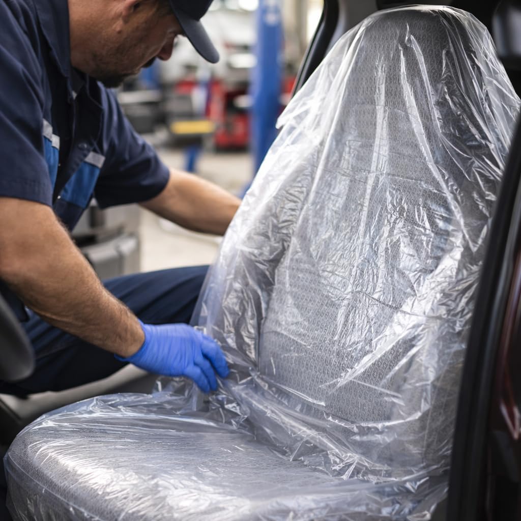 The Hi-Tech Industries Disposable Plastic Car Seat Covers (SC-500) offer a simple and effective solution for protecting vehicle interiors during service, cleaning, and transport. Designed for professional environments, these clear 0.5 mil plastic seat covers help prevent dirt, grease, and oil from transferring onto customer seats. Each roll includes 500 single-use seat covers, making them ideal for high-volume operations such as automotive service centers, quick lube facilities, car washes, and valet parking services. The disposable design ensures hygienic use, eliminating cross-contamination between vehicles and maintaining a clean, professional appearance. Easy to install and remove, these lightweight yet durable seat covers are an essential tool for preserving vehicle interiors and delivering a positive customer experience.