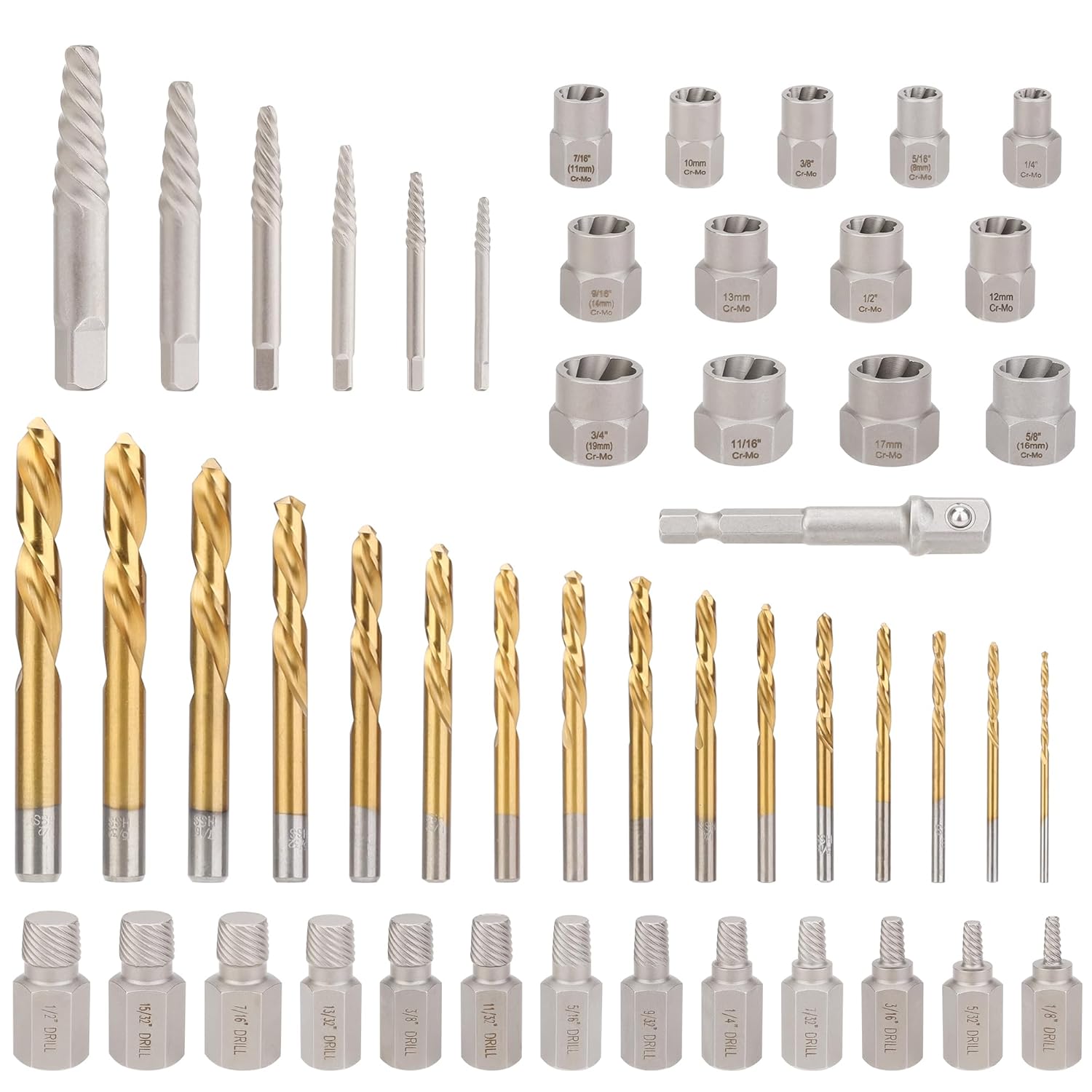 | Material Type | CR-MO, HSS with titanium coating |