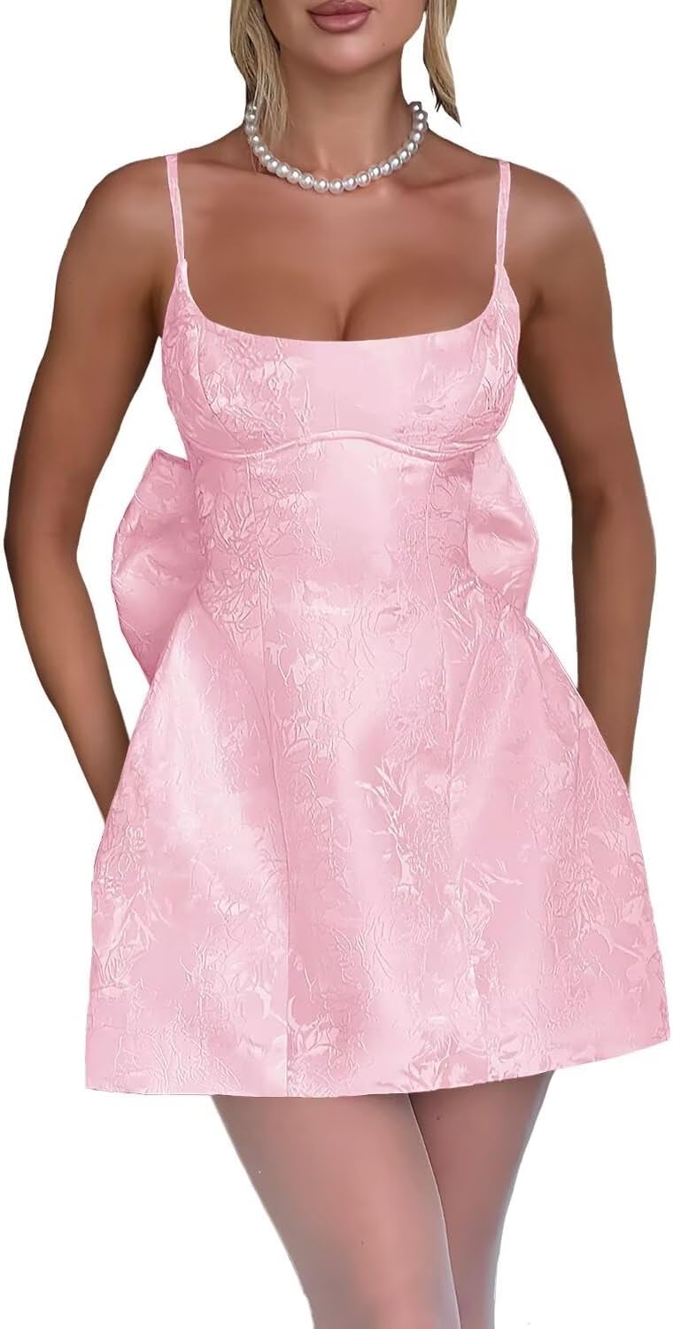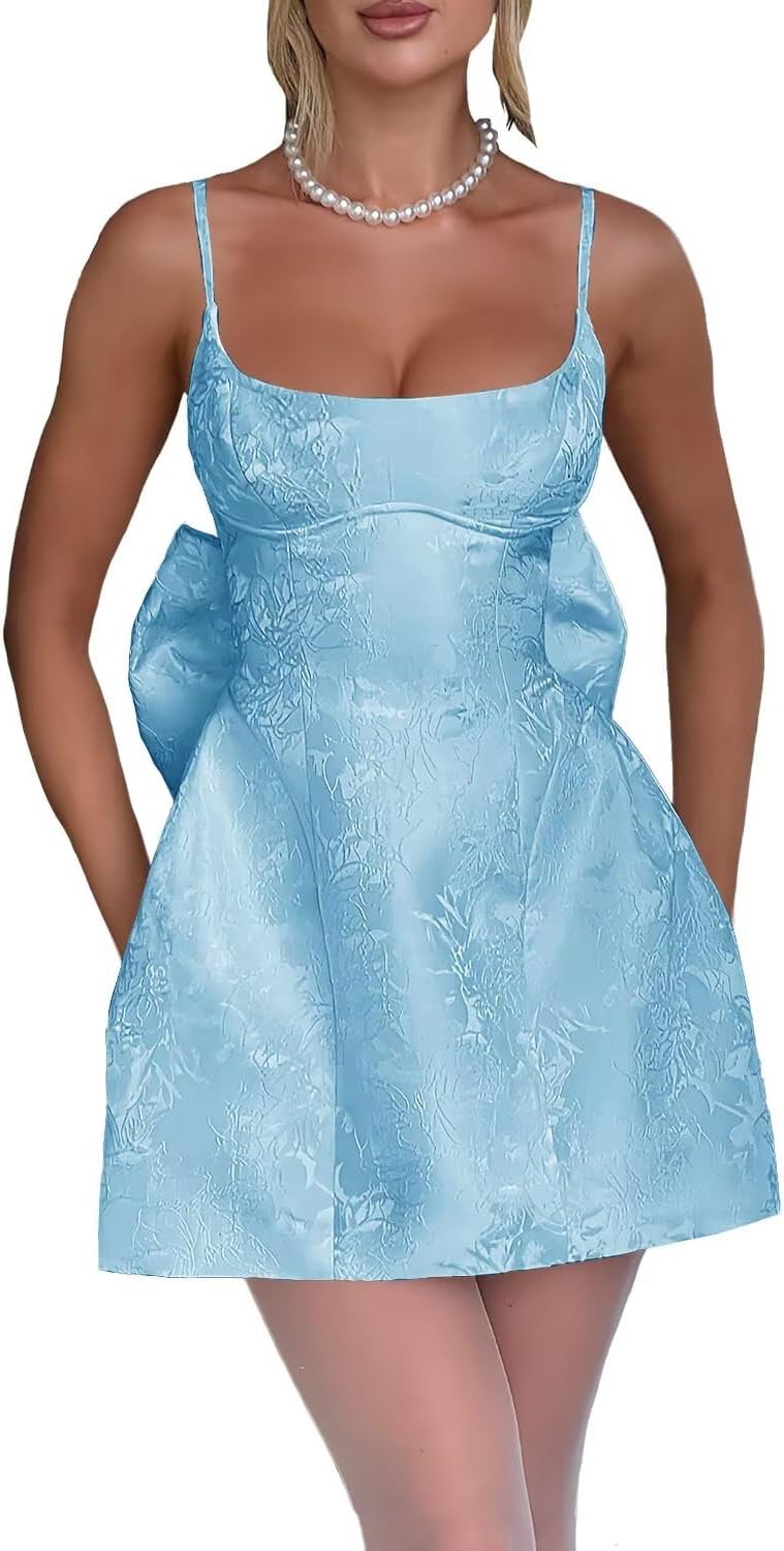 Welcome to keosin store. Length: short/bow knee Sleeve: Sleeveless Collar: Scoop Neck Fabric: Jacquard Satin Back detail: Backless Target consumer groups: Teenagers, Juniors, Women Feature description section: Short Bow Knot、Satin、A-Line、Jacquard、Mini、Under Bust、Built in bra、Floral、Tulip Shaped、Spaghetti Strap Tulip type skirt style makes you look better when you wear it. The back bow design makes your every back extra elegant. The scoop neck cut makes your breasts look fuller. The design of spaghetti straps makes the dress more suitable for people with different body shapes. Choose it! It can bring you more compliments! Customization tips: If you are unsure which size is suitable for you. We suggest that you measure your body, and we offer free customization services. You need to measure the following areas: 1. Chest circumference of __ inches/or __ centimeters 2. Waist circumference of __ inches/or __ centimeters 3. Hips __ inches/or __ centimeters 4. Height (without shoes) __ inches/or __ centimeters 5. Heel length __ inches/or __ centimeters 6. clavicle to ground __ inches/or __ centimeters 7. Date you need this dress: ________. Soon, a perfectly fitted dress will come towards you.