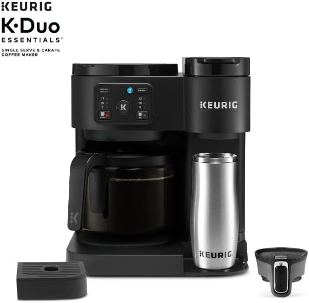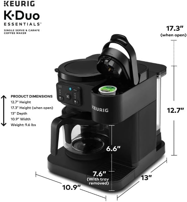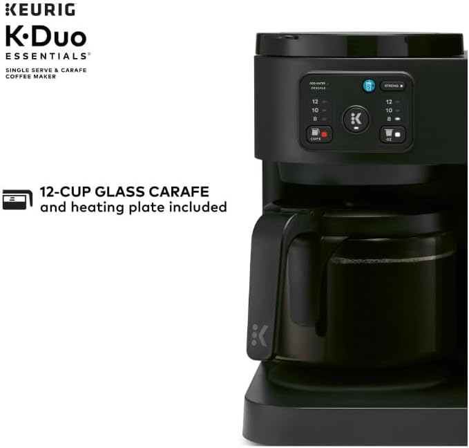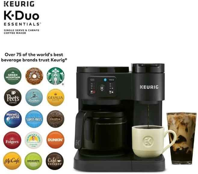 Versatile Brewing: Brews both cup pods and coffee grounds for single cups or full carafes. Large Reservoir: Features a 72 oz removable water reservoir for fewer refills and convenient brewing. Multiple Sizes: Offers brewing options for 8, 10, or 12-oz single cups and 8, 10, or 12-cup carafes. Ice Option: Brew Over Ice feature adjusts temperature for iced coffees and teas with less ice melt. Strong Brew: Includes a Strong Brew option for a more intense, flavorful cup. Glass Carafe: Comes with a 12-cup glass carafe and heating plate to keep coffee hot. Pause & Pour: Allows you to pause mid-brew to serve fresh coffee, then continue brewing. Compact Design: Combines two brewers in one space-saving unit, perfect for any coffee occasion.
