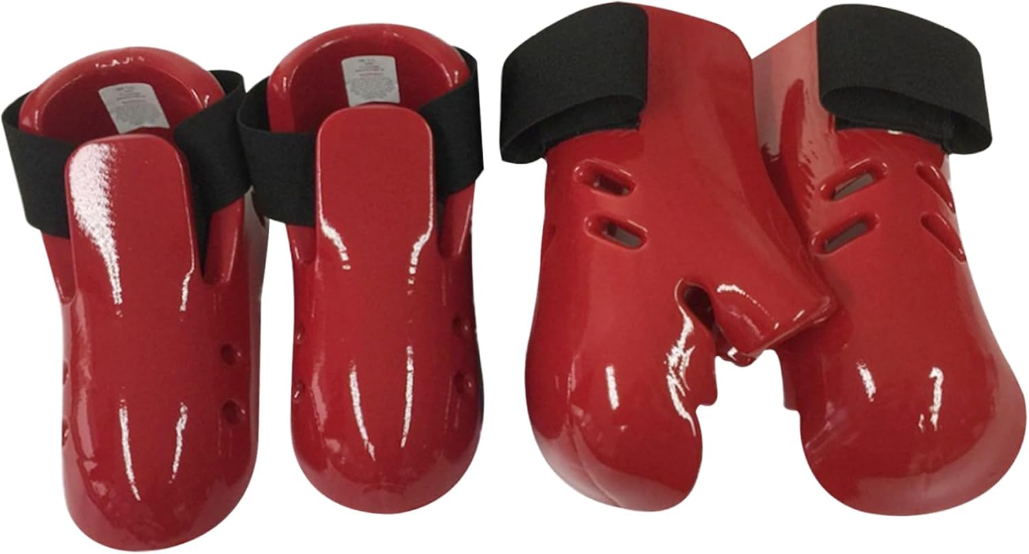 Description: Karate Gloves & Taekwondo Foot Protector Shock-Absorbing Sponge Lining Punching Gloves with Elastic Strap for Kickboxing, Martial Arts offer the ultimate combination of safety and performance, featuring ergonomically designed sparring gloves and foot protectors ideal for karate, taekwondo, kickboxing, and other martial arts practices; crafted with quality shock-absorbing sponge lining to minimize injury by cushioning every strike, these gloves provide both comfort and protection during intense sparring sessions, while the elastic adjustable strap ensures a secure, customizable fit that maintains stability and freedom of movement; constructed from synthetic materials, the gear withstands rigorous training conditions without losing shape or resilience; these boxing and punching gloves enhance grip and dexterity for precise attacks and blocks, and the taekwondo foot protectors balance protection with agilitys to support a full range of martial arts techniques; perfect for athletes seeking reliable sparring gear that combines safety, versatility, and long-lasting performance. Features:. Karate Gloves Set. -Color: Red. -Material: Sponge. Note:Manual measurement, please allow slight errors on size.The colors may exist slight difference due to different screens. Package Including 1 Set Karate Gloves