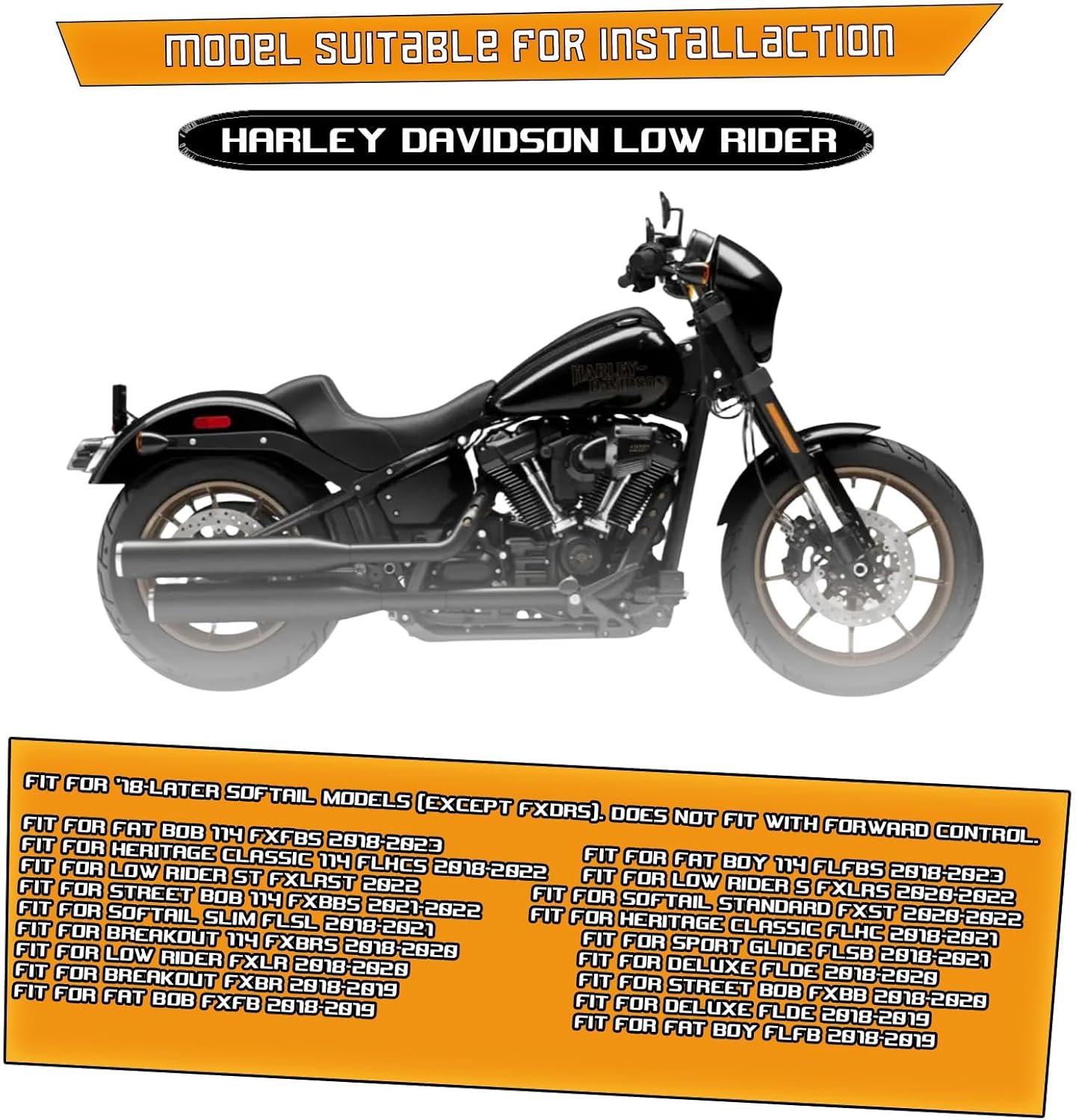 | Compatible with Vehicle Type | Fit for '18-later Softail models (except FXDRS). Does not fit with Forward Control., Harley Softail Fat boy Fat Bob Heritage Low Rider Breakout Street Bob Deluxe Models 18-later |