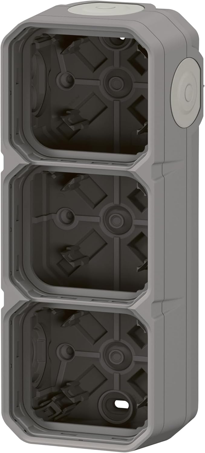 Plexo Legrand Waterproof Housing for Surface Mounting - 3 Post - Grey: Through the Plexo range, Legrand offers this waterproof plate holder for surface mounting Plexo range 3 posts Covered Grey