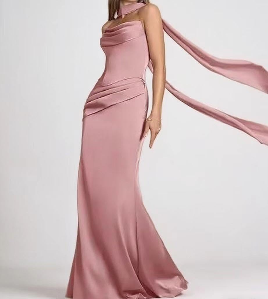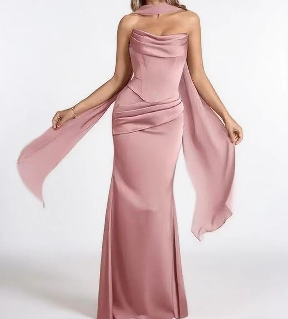 | Fabric Type | Long Bridesmaid Dresses for Wedding Pleated Satin Formal Evening Gown with Scarf |