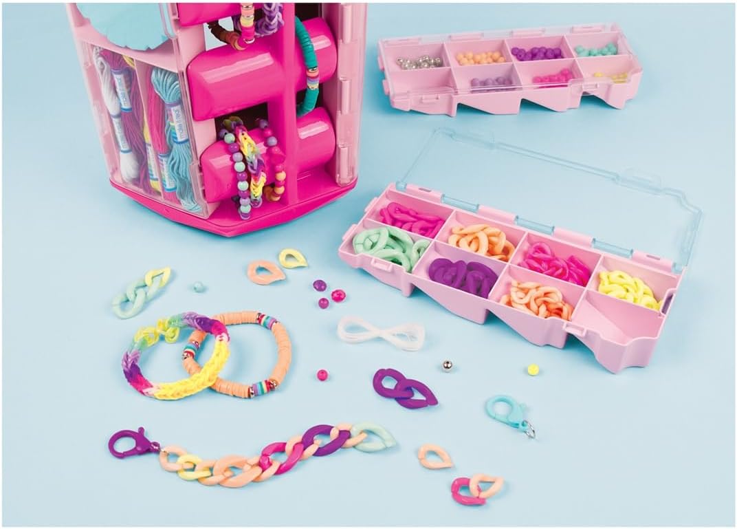 | Additional Features | 5 removable storage trays, bracelet holder, and over 40 jewelry-making activities |