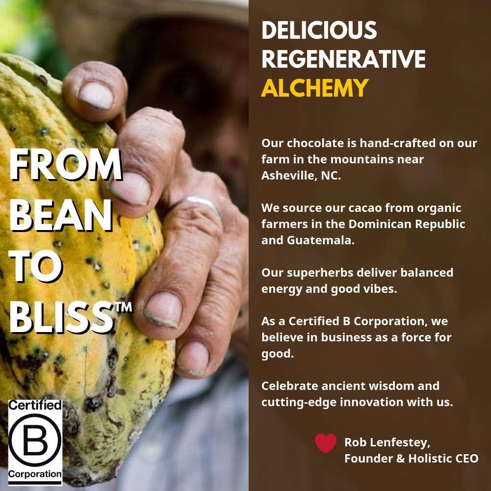 THE MOST NUTRITIOUS CHOCOLATE EVER: We are redefining chocolate with superfood chocolate that gives you more energy, nourishes your body, and makes you feel good supporting organic farming, responsible sourcing, and small-scale bean-to-bar artisan chocolate making. Our 15+ adaptogen ingredients are powerful and consciousness provoking. Our paleo and keto chocolate are downright delicious. Mandala Chocolate is a leader in intentional business, hand-crafting chocolate from our forest farm in Asheville, North Carolina.
