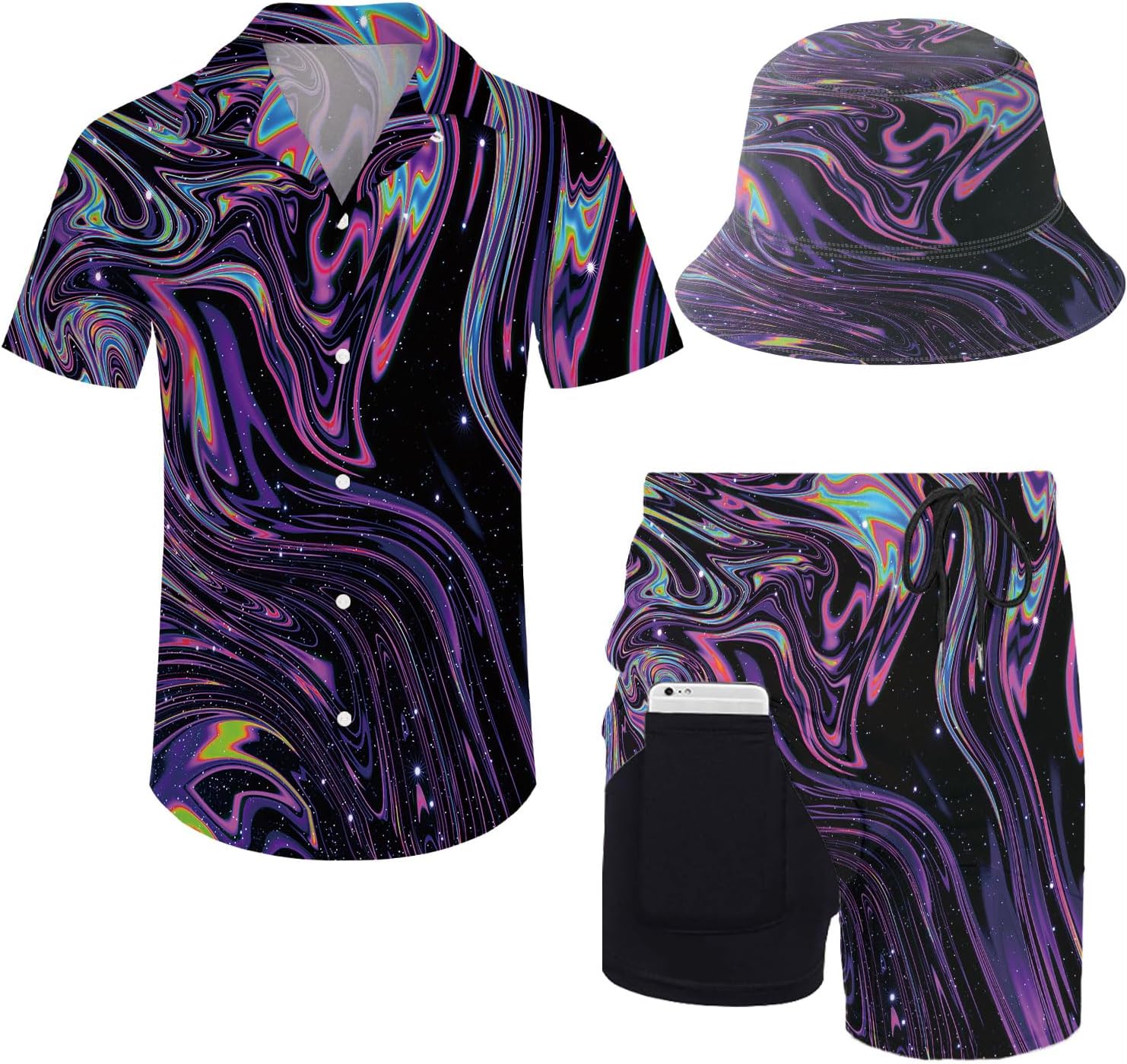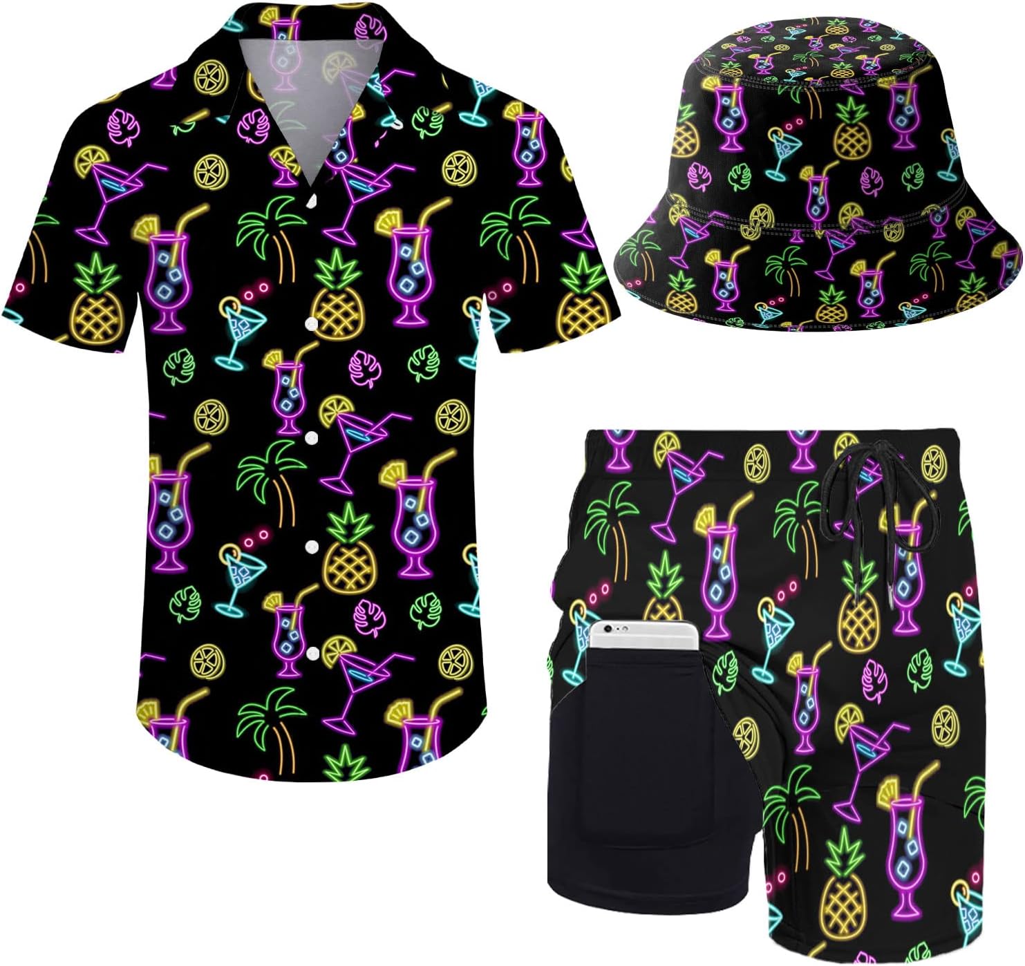 90s short sleeve 2 piece shirt set with bucket hat -80s shirt and short bucket hats outfit, retro style, button closure, add 80s 90s print to your wardrobe for summer look. And 80s costumes 90s tracksuit for men.