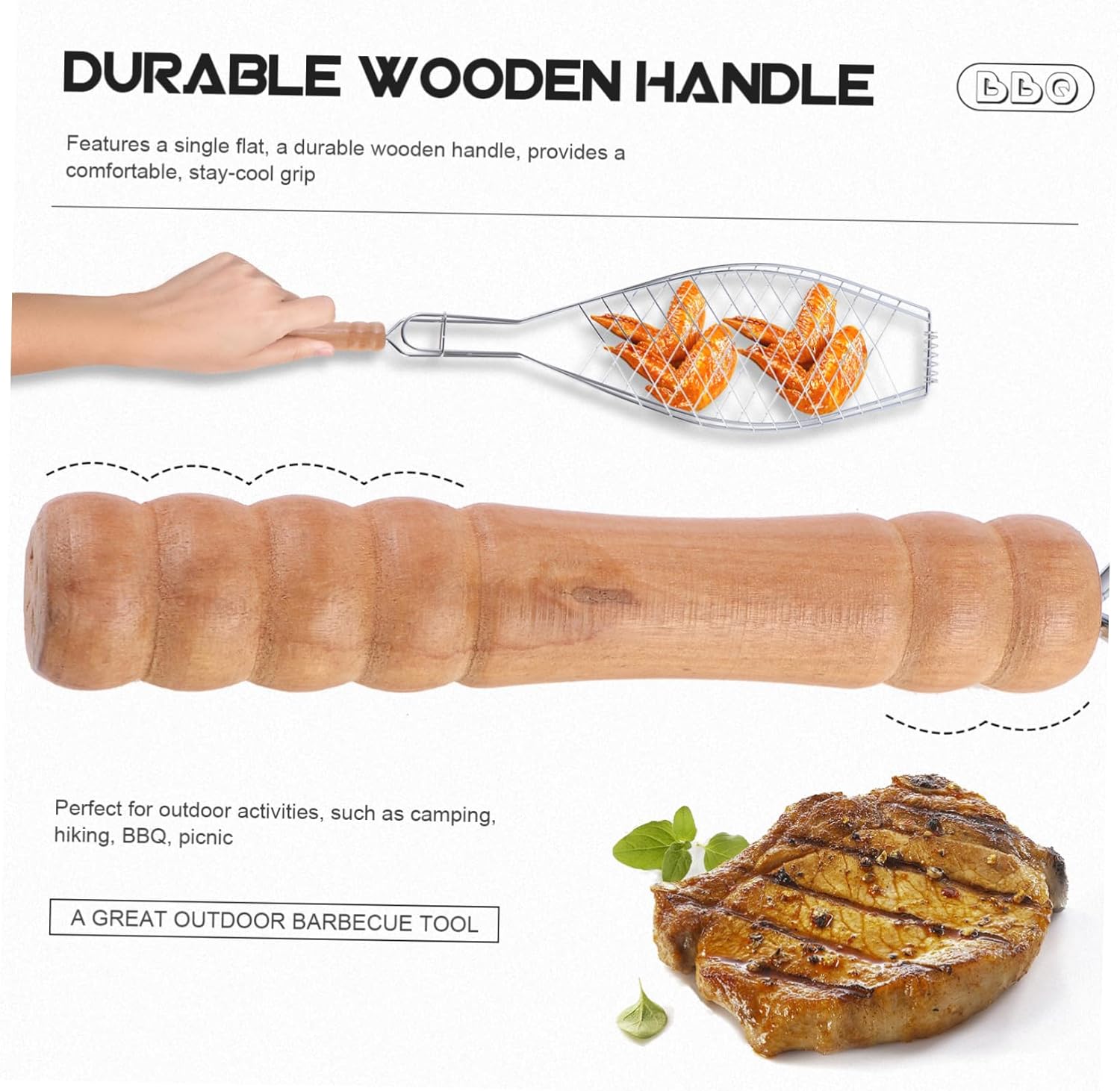 Package Include 2 x Barbecue Grill Net Features -Product Info:BBQ net clip - Size: 60.00X14.00X2.00cm/23.58X5.50X0.79in bbq accessory - Color: As shown bbq tools for fish. - Material: iron and wood grill rack. - Suitable for grilling steaks, sausages, chicken wings, ribs, lamb, corn, potato and fish etc. Reducing sticking and falling through grates grilled fish clip. - Compact size, you can storage it anywhere at home A great gift chocie for friends who love barbecue grill fish holder. - Perfect for outdoor activities, such as camping, hiking, BBQ, picnic, etc grill tongs for outdoor grill. - Features a single flat, a durable wooden handle, provides a comfortable, stay- grill tool for fish. - Made of iron and wood material that can ensure its durability grill nets.Goods Informationbarbecue grill tool Are you looking for a durable and convenient barbecue tool for your barbecue party.grilling basket You can place it on the grate and roast the food.grill net with handle A great outdoor barbecue tool.fish grill rack This item is a barbecue grill grates which is manufactured for nonstick and safe use