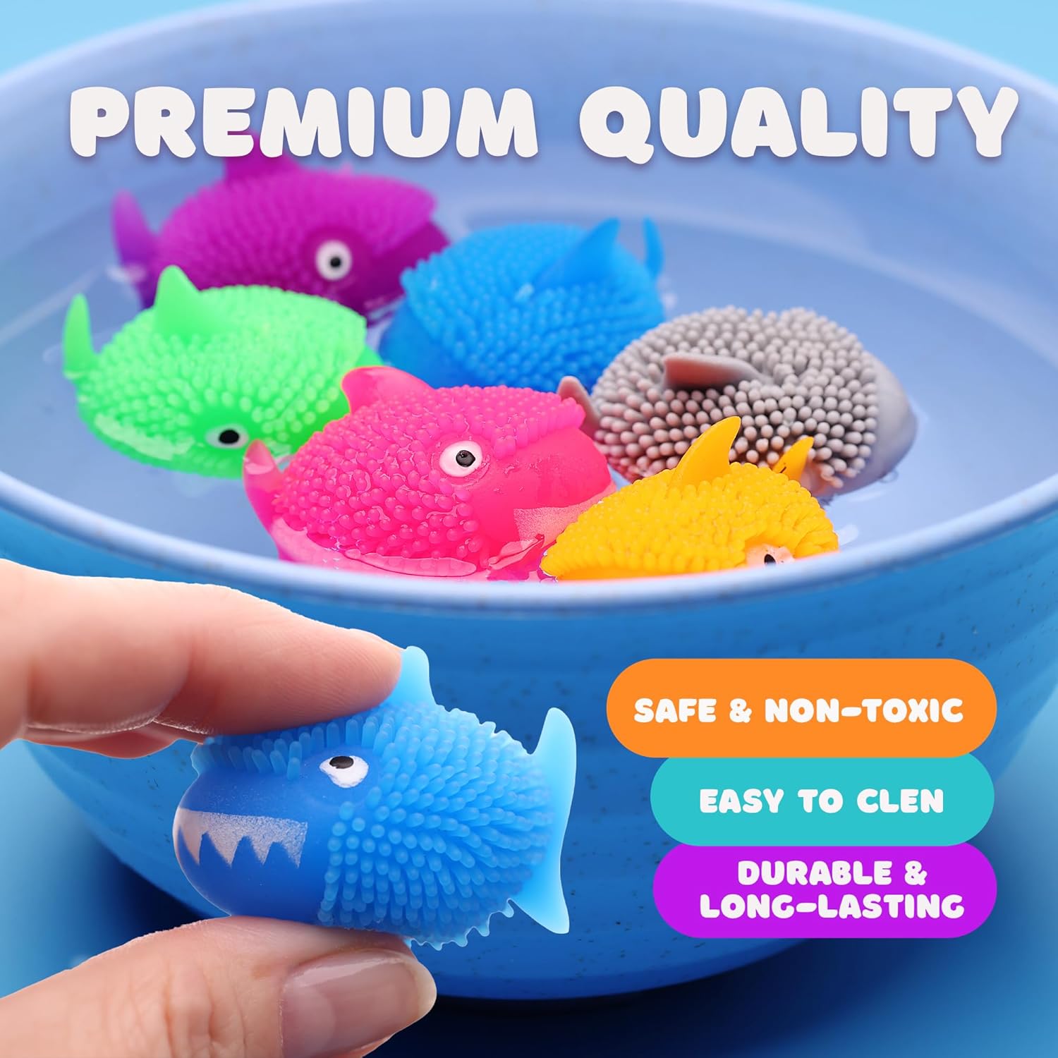 Squishy shark toy. This creative toy set will make a great Easter gifts for kids. Use them as Easter basket stuffers for toddler and Easter egg fillers for kids and give joy and fun to your kids.