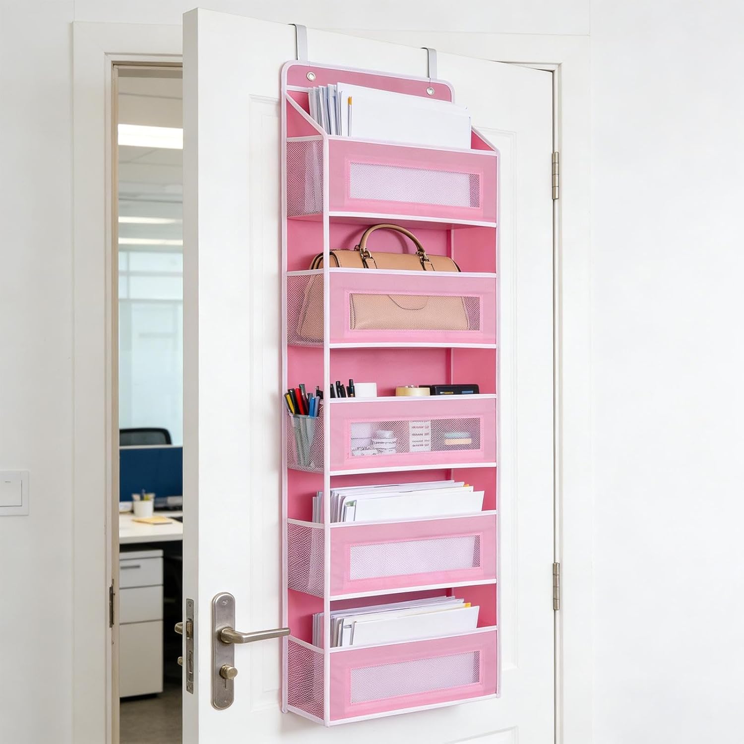 Product description Maximize your space with the behind-the-door organizer, featuring a 5-tier design that combines shelves, baskets, holders, and racks for versatile storage solutions. Each tier includes pockets to neatly organize items in various settings, such as closets, bedrooms, nurseries, pantries, kitchens, dorms, laundry areas, homes, apartments, and RVs. This organizer ensures easy access to everyday necessities while keeping spaces clutter-free. The durable construction supports multiple uses and fits seamlessly into different environments, making it ideal for storing small to medium-sized items. Enhance your storage options with this practical behind-the-door organizer, designed to meet diverse household needs.SpecificationMaterial: non-woven fabricWeight: 1010gProduct size: about 145x40x17cm/57.09x15.75x6.69 inchesListover the door storage organizer x 1Note:1. Due to lighting effects and display angles, there may be color differences in the product.2. Due to manual measurement, there may be errors in product size, please understand. Manufacturer Contact Information Refer to description