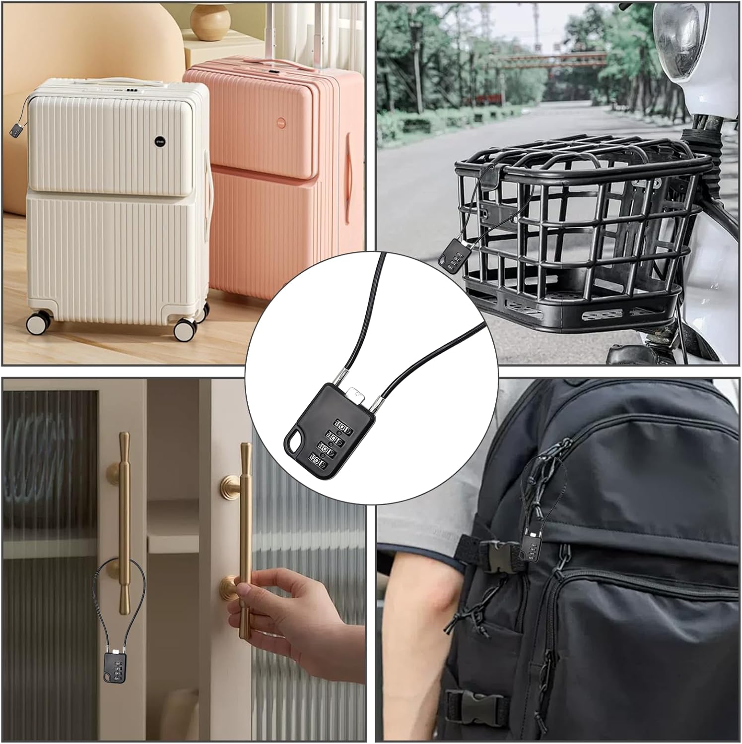 Description: 1. Strength and flexibility, compact size and small. 2. Made of high quality zinc alloy, high strength and safety. 3. Steel wire can be bent and wound as desired, can be used on different objects. 4. For lockers, luggage, suitcases, tool boxes, helmets, cabinets, etc. Specifications: Quantity: 3 pieces. Colour: black. Material: zinc alloy. Product size: 30 cm
