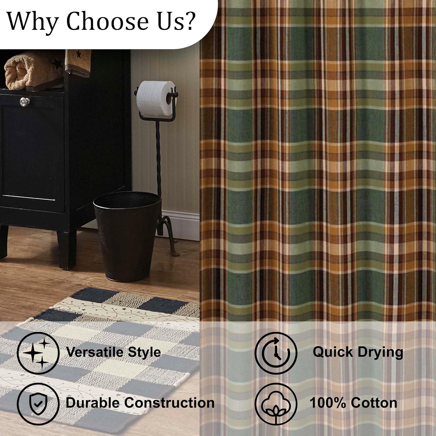The wood River collection from Park Designs features a warm lodge look in chocolate, pine, cinnamon, wheat, and cream. 100% cotton.