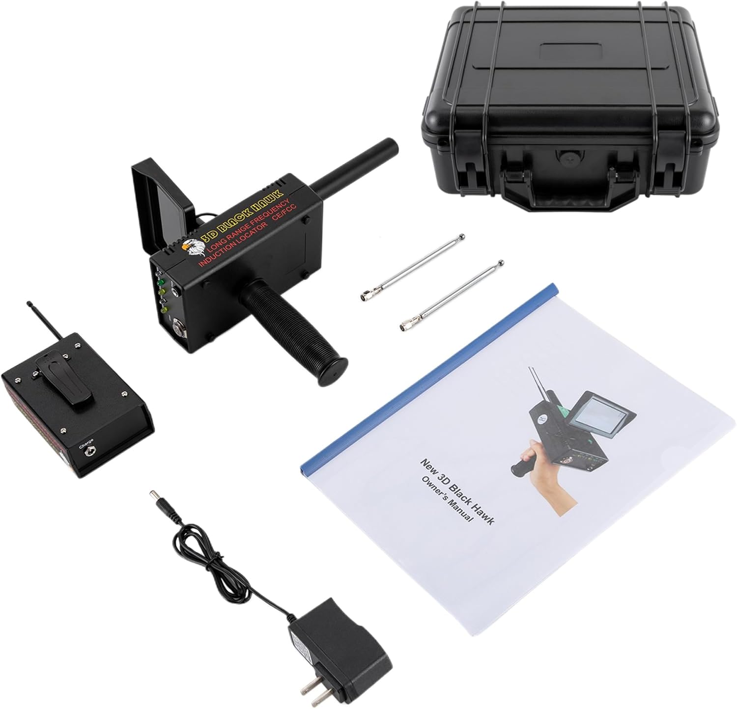 SpecificationsColor: Black, YellowMaterial: Plastic, Copper, SpongePlug Type: US StandardScreen Type: LED Digital DisplayPower Source: Rechargeable Battery Powered(Included)Detection Type: Gold, Silver, Copper, DiamAudio Mechanism: Visual and AuditoryController: Automatic Rotation SearchVoltage: 110VBattery Voltage: 9.6-12VTransmission Frequency: 12KHzWorking Temperature: 0-40℃/32-104℉Max. Detecting Depth: 25m/82ft, 5m/16.4ft(Small Objects)Max. Measuring Distance: 100m/328ftTransceiver Size(LxW): 15x10cm/5.9x3.94inController Size: 32x10x18cm/12.6x3.94x7.09inPackage Size: 34x15x42cm/13.39x5.91x16.54inGross Weight: 3.3kg/7.28 lbsNet Weight: 3.14kg/6.92 lbsPackage Included1 x Controller1 x Transceiver1 Pair x Headphones1 x DVD Disc2 x Power Adapters1 x Storage Case1 x English ManualNotes1. Please note that the control unit is not waterproof.2. Please note that you cannot select two metals at the same time as this will damage the instrument.3. Since the handle of the instrument can be turned freely, and the wind can interfere with the metal detector, using this instrument in windy conditions may be subject to certain interference. The use of this instrument is closely related to the operator's control over scanning.4. Please note that due to the presence of geomagnetic storms and solar auroras, the instrument must be calibrated for some time before it can function properly. During this period, the receiver will continue to receive signals, but the instrument will not make any response. This situation is uncontrollable and requires time to adapt.5. Please note that this instrument is suitable for field operations, as it is susceptible to interference, especially radio waves when detecting in urban areas. Therefore, mobile phones should be turned off before using the instrument.6. Please note that if the metal is too small, the machine may not be able to detect it through scanning.