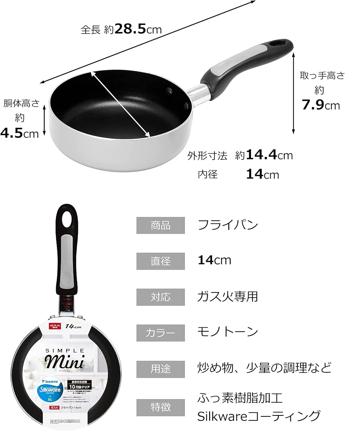 A mini frying pan with a trendy monotone color. The mini size is perfect for making small dishes such as fried eggs, etc. The color will fit in your kitchen or room because of the more time you spend at home. ● We think you are concerned about visitors or the landscape of the room, but even if you leave it on the kitchen trivet, it looks simple and stylish. Small size, so it can be stored in a space saving space. Fluorine resin treatment makes ingredients difficult to stick. Precautions for Use: This product is a mini frying pan that is compatible with gas fires. Please note that this product cannot be used with induction. Please clean it with dish detergent before use. Please be aware that sudden heating may cause damage to the fluorine resin coating film or burnt foods etc. Fluorine resin coating film may wear off over time and become sticky. After using, please put the dish soap into the sponge and wash well and remove the dirt. Also, please wipe dry thoroughly before storage.
