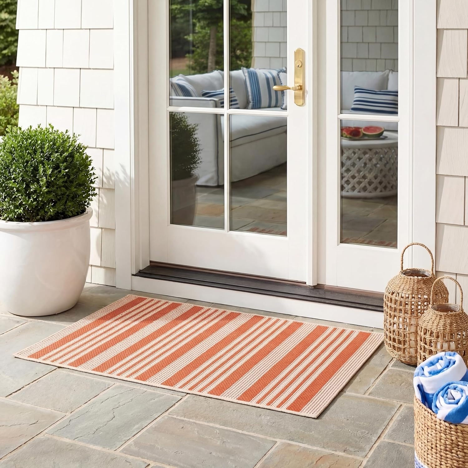 Perfect for any backyard, patio, deck, or poolside, this stylish rug from the Courtyard Collection is a practical addition to any outdoor or indoor living space. Conveniently pet and kid-friendly, this easy-care rug is also well-suited for high-traffic areas. This beautiful rug collection takes outdoor decorating to the next level with new designs in fashion-forward colors, and patterns from classic to contemporary.