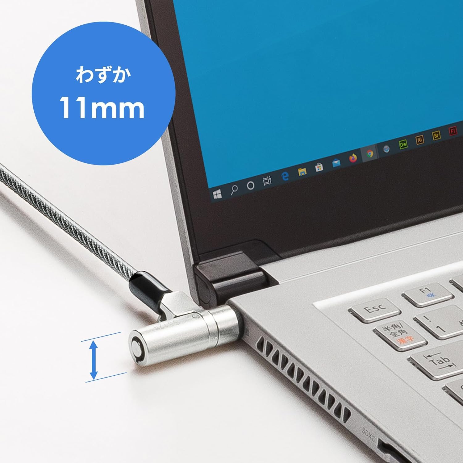 ● Security wire compatible with all 2 types of security slots, standard and nano. (Noble is not compatible. ) The cylinder part can be rotated, so you can use it without straining the wire. ● The surface of the wire is vinyl coated, which prevents the device from being scratched during installation and transportation. Note: Compatible with standard locks of 0.1 x 0.3 inches (3 x 7 mm) and nano-locks. (Not compatible with 3.2 x 4.5 mm noble locks. ) - Cylinder size (diameter): 0.4 inches (11 mm) ■ Mountable Slot Size: 0.1 x 0.3 inches (3 x Also compatible with all 0.1 x 0.2 inches (2.5 x 6 Not compatible with 3.2 x 4.5. ■ Wire Material: Zinc (with vinyl coating) ■ Set Includes: 1 x Security wire, 2 x Keys ■Package shape: plastic bag ■ Wire length: 5.9 ft (1.8 m) ■Wire diameter: 4.5mm ■ Mountable Slot Name: Kensington (Standard) Compatible with all NanoSaver (NanoSaver). ■Master key support: Yes ■Compatible models: Compatible with all standard locks 3x7mm and 2.5x6mm nanodocks. ■ Body Shape: One-piece