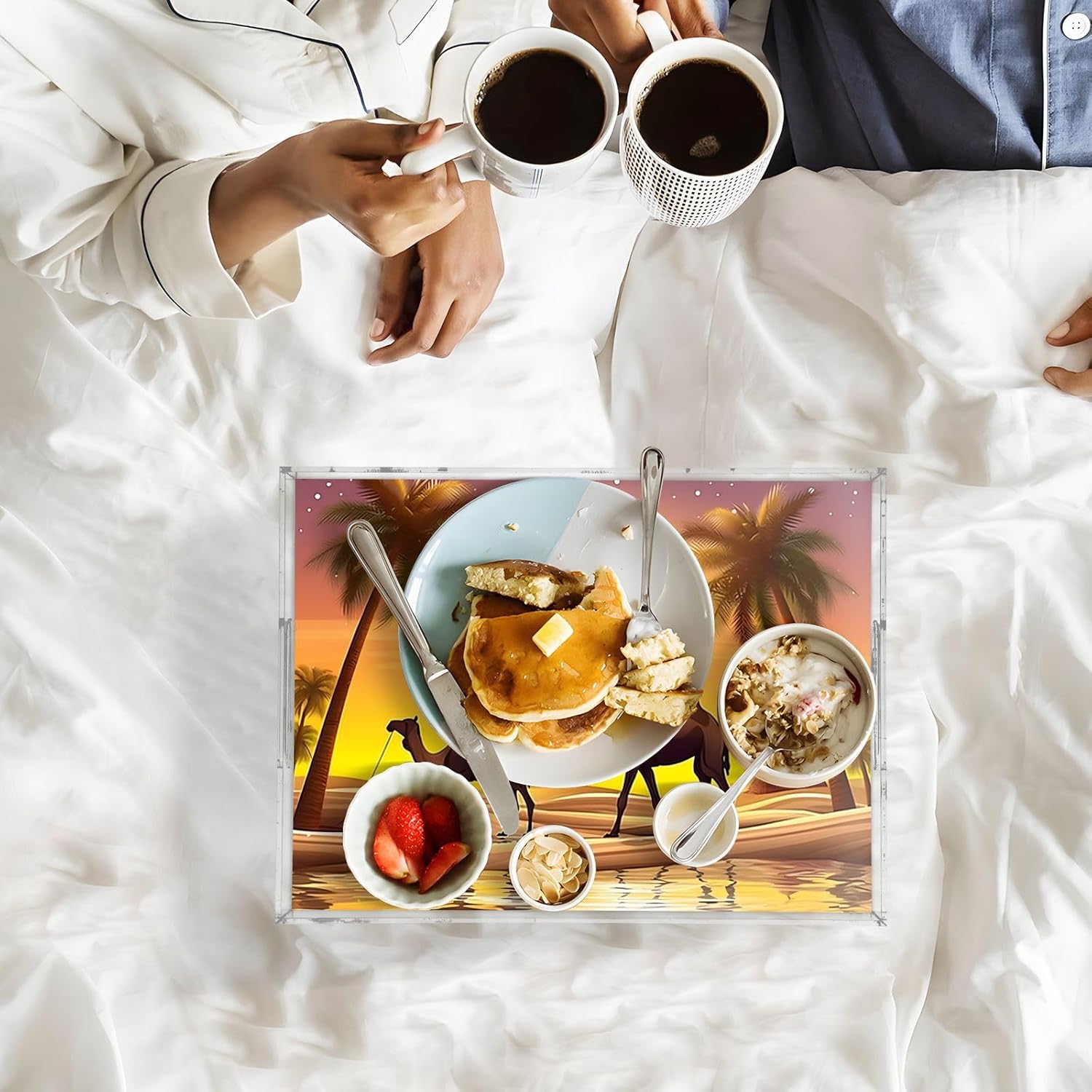 Product Parameters The Grgvtei Acrylic Serving Tray is expertly sized at 15.7 inches in length, 11.8 inches in width, and 1.9 inches in height (L15.7" x W11.8" x H1.9"). This spacious surface is perfect for holding dishes up to 11 inches. Despite its generous size, it remains lightweight and easy to carry, thanks to the integrated oval handles. The overall design is robust yet minimalist, adding a touch of sophistication without clutter. Product Selling Points Our clear acrylic tray is engineered for both beauty and function. The premium acrylic material offers exceptional clarity and durability, resisting yellowing over time and ensuring it remains a stylish part of your home for years. The smooth, polished edges are not only safe for daily use but also prevent any snagging. The raised lip is a crucial feature for containing small spills and keeping items securely in place. Combined with the felt non-slip pads on the base, this tray stays put on glass, wood, or marble surfaces, protecting them from scratches and movement. It's more than just a plastic tray; it's a lucite-style statement piece that combines practicality with elegance. Usage Scenarios Transform your organization and entertaining with this incredibly versatile acrylic tray with handles. In the kitchen and dining room, it serves as a perfect platform for appetizers, drinks, or condiments, making party hosting a breeze. On your coffee table, it instantly organizes remotes, coasters, and journals into a neat display. In the bathroom, it elegantly corrals perfume bottles, lotions, and cosmetics, turning countertop clutter into a curated display. Use it on a dresser to organize jewelry and daily essentials, or in the entryway for keys and sunglasses. Its durability even makes it suitable for protected outdoor use on a patio. Please Note: For food serving, we recommend placing food on plates or in bowls rather than directly on the tray for easiest cleaning and maintenance.