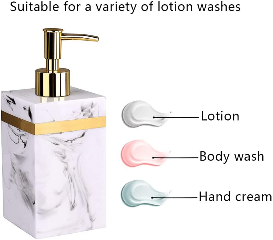 Gorgeous Design: It can be placed in any countertop, bathroom, kitchen, or office. Use it as an ornament to exemplify your unique taste as well.Name: Soap Dispenser / Lotion Bottle / Liquid Dispenser / Liquid Soap Dispenser / Shower Dispenser Material: ResinSize: 400ml: 8.5*7.5*16cm/3.3*2.9*5.9 inches; 500ml: 7.5*7.5*18.5cm/7.2 inchesCapacity: 400ml/13.5 oz ; 500ml/16.9 ozInstallation method: desktopColor: A-white , B-blackSuitable for space: home kitchen and bathroom, hotel, KTV and bar ,etc.Product Package: Soap Dispenser*1 Please note:1.Only sell soap dispenser2.Please confirm the size and color before purchasing.3.Manually measure the size, there may be some small errors, please refer to the actual product, thank you4.Due to the difference between the light and the shooting angle or the light below the display, there may be slight chromatic aberration, please understand.BEST QUALITY SERVICE FOR YOU : We adhere to the principle of "Customer first, Quality first". If you have any problem about products, contact us and we will try our best to solve it for giving you a satisfied experience.