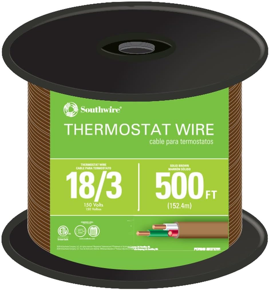 Product Description From the Manufacturer 18-Gauge; 3 Conductor; Solid Copper Thermostat Wire; Class 2 Power-Limited Circuit Cable; Brown Jacket. Southwire Thermostat Wire is manufactured using solid copper conductors with 6 mils of polyvinyl chloride PVC insulation. The two conductor cable is flat-multiconductor cables are round. Southwire's Thermostat Wire is a class 2 power-limited circuit cable for use in heating and air conditioning controls bell and alarm systems. Southwire's thermostat cable adheres to the following specifications: Class 2- Power Limited per NEC Article 725; MP- Multi Purpose Cable per Articles 725; 760; and 800; CM-Communication Cable per Article 800; FPL-Power Limited Fire Protective Signaling Cable per Article 760; Sunlight Resistant; PVC Insulation; and Solid Bare Copper per UL Standard 13; RoHS Compliant; OSHA Acceptable. Southwire provides a full line of products; in both copper and aluminum; for a wide range of applications. The company leads the industry in new and innovative products that help simplify installation; saving time and money. In addition to its standard product line; Southwire can also make custom products offering its customers the most complete line of products for almost any requirement or situation. No matter what the residential; commercial; or industrial application requires; you need look no farther. Southwire has just the right wire and cable product you're looking for. From the Manufacturer From the Manufacturer 18-Gauge, 3 Conductor, Solid Copper Thermostat Wire, Class 2 Power-Limited Circuit Cable, Brown Jacket. Southwire Thermostat Wire is manufactured using solid copper conductors with 6 mils of polyvinyl chloride PVC insulation. The two conductor cable is flat-multiconductor cables are round. Southwire's Thermostat Wire is a class 2 power-limited circuit cable for use in heating and air conditioning controls bell and alarm systems. Southwire's thermostat cable adheres to the following specifications: Class 2- Power Limited per NEC Article 725, MP- Multi Purpose Cable per Articles 725, 760, and 800, CM-Communication Cable per Article 800, FPL-Power Limited Fire Protective Signaling Cable per Article 760, Sunlight Resistant, PVC Insulation, and Solid Bare Copper per UL Standard 13, RoHS Compliant, OSHA Acceptable. Southwire provides a full line of products, in both copper and aluminum, for a wide range of applications. The company leads the industry in new and innovative products that help simplify installation, saving time and money. In addition to its standard product line, Southwire can also make custom products offering its customers the most complete line of products for almost any requirement or situation. No matter what the residential, commercial, or industrial application requires, you need look no farther. Southwire has just the right wire and cable product you're looking for.